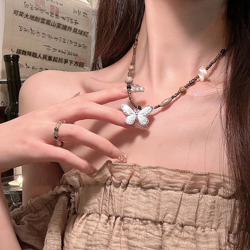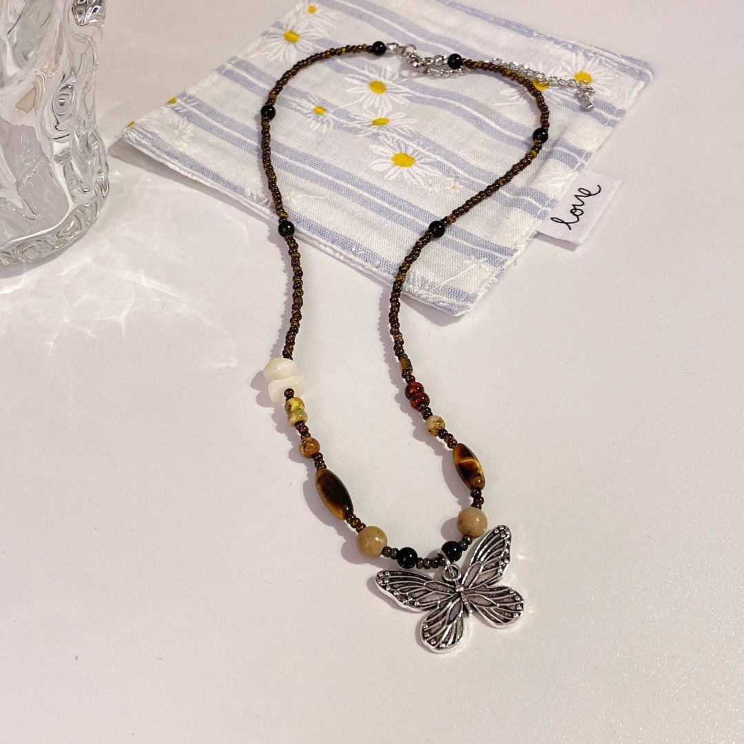新中式復古國潮風串珠蝴蝶項鍊ins小眾設計百搭鎖骨鏈