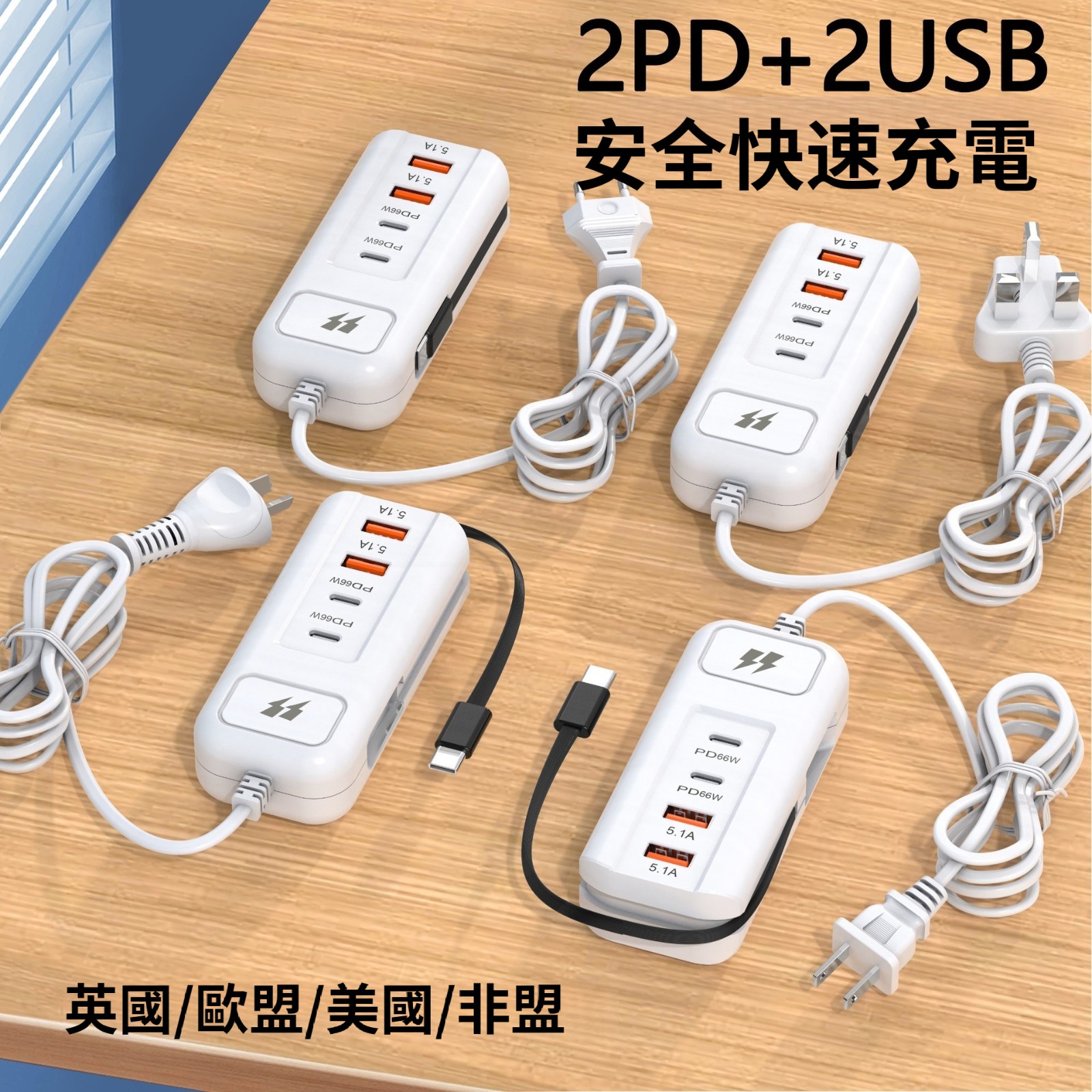 新款排插手機4usb充電器多口雙pd快速充充頭通用帶type-c插座延長 NT$ 899