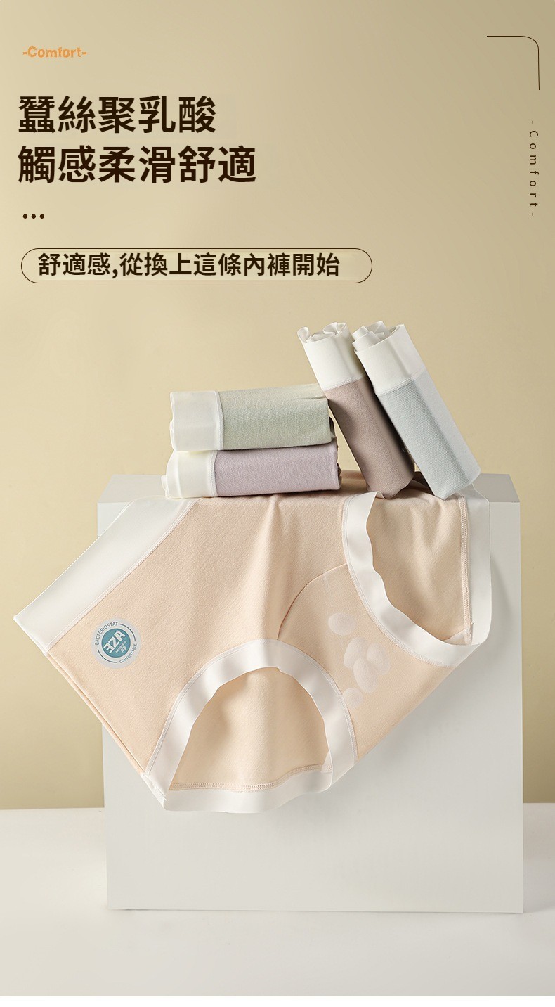 第 1 件 : 簡約高腰無痕內褲女透氣高彈桑蠶絲聚乳酸抑菌抗菌女士內褲三角褲