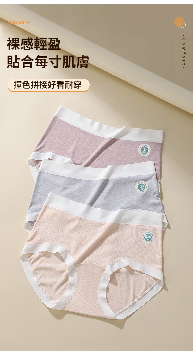 第 3 件 : 簡約高腰無痕內褲女透氣高彈桑蠶絲聚乳酸抑菌抗菌女士內褲三角褲