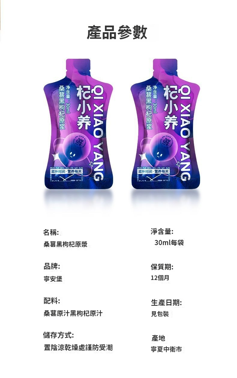 杞小養桑葚黑枸杞原漿30ml袋裝
