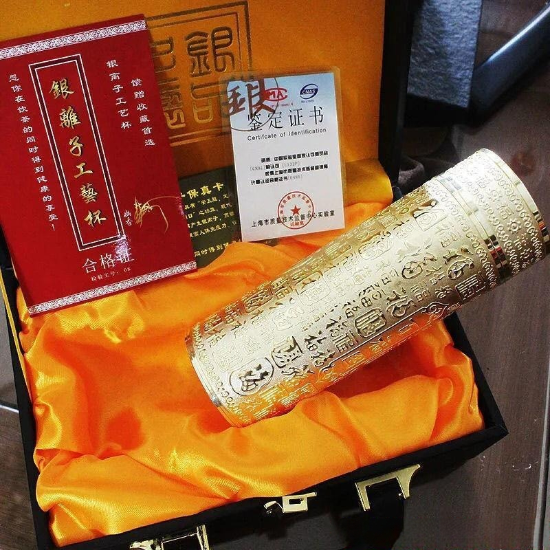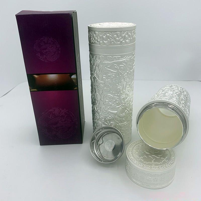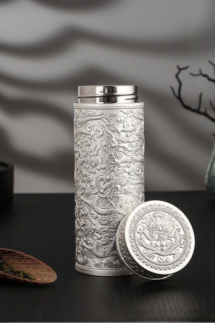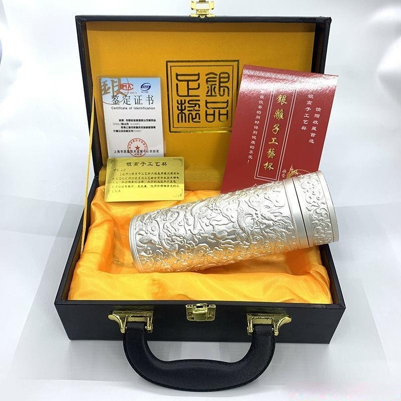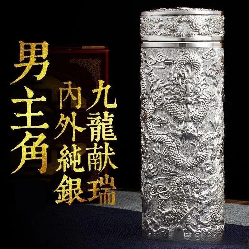 S999純銀內膽銀茶杯九龍銀杯高檔保健保溫杯雪花銀水杯銀離子水杯
