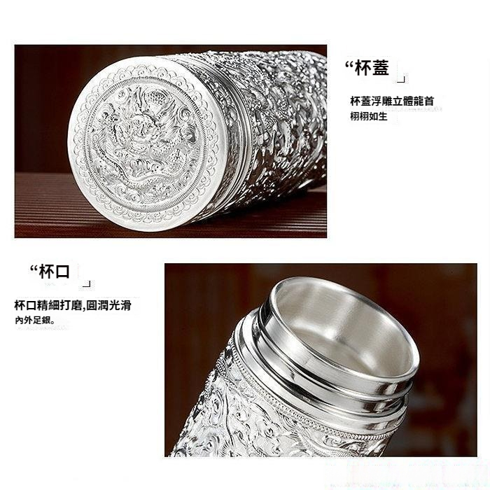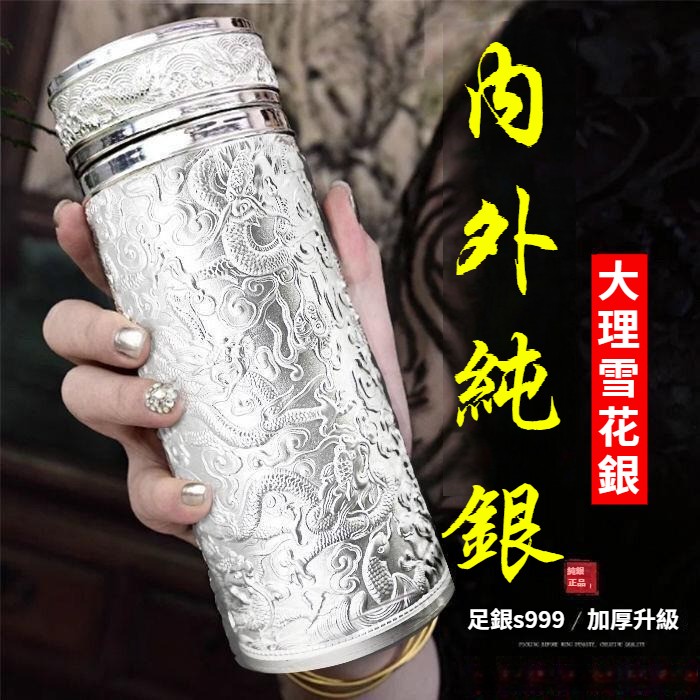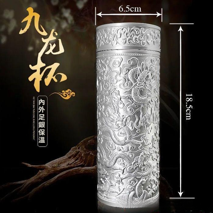 S999純銀內膽銀茶杯九龍銀杯高檔保健保溫杯雪花銀水杯銀離子水杯 NT$ 998