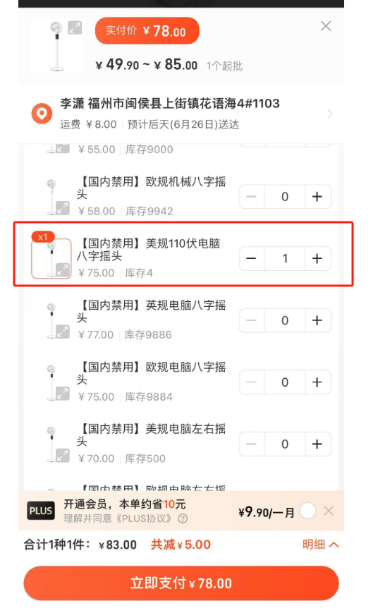 ①循环扇 1个(美规110V电脑八字摇头)https://qr.1688.com/s/s0pr8jEa CZ5971