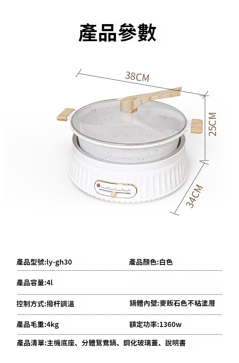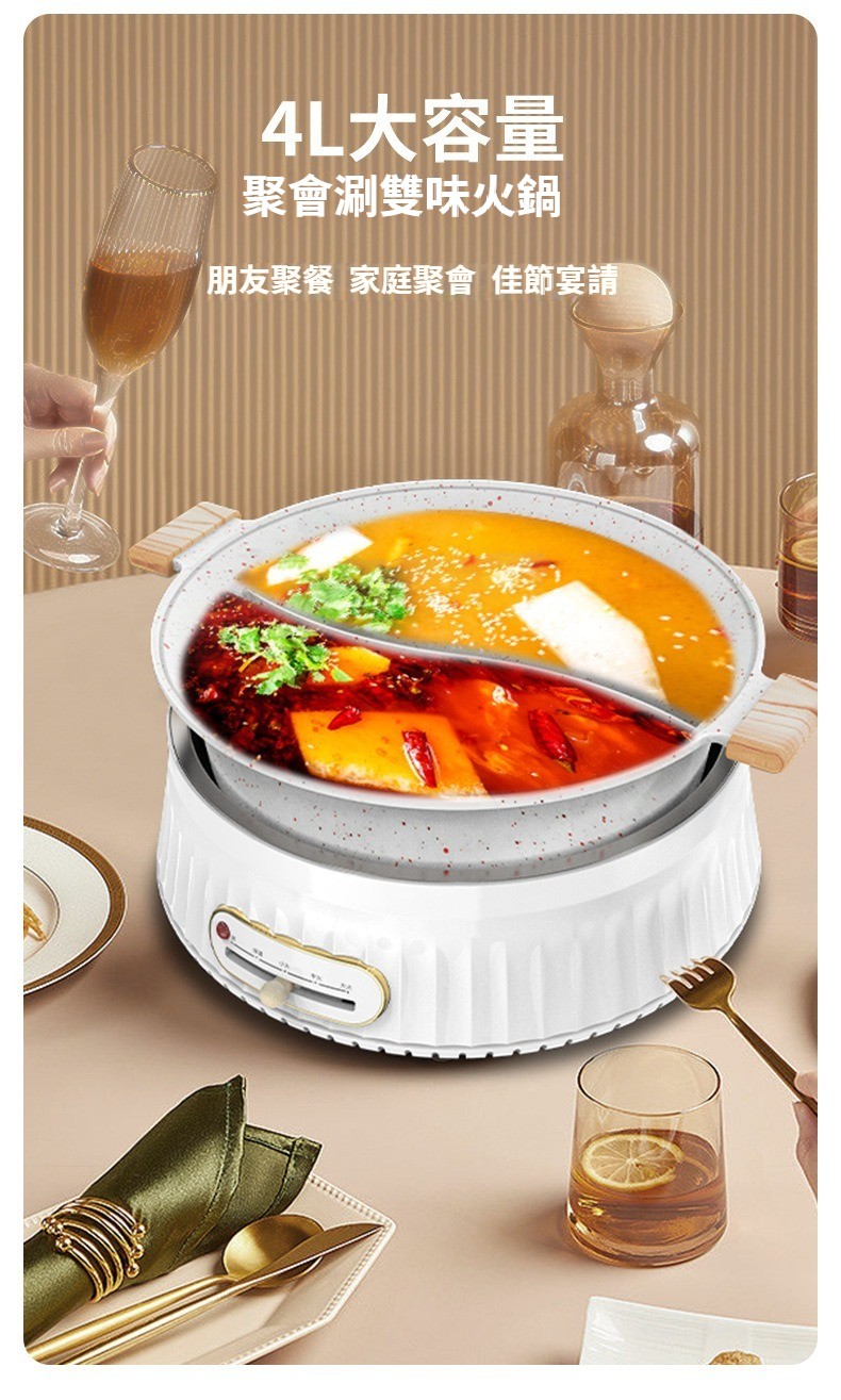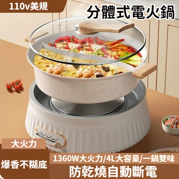 110v分體式鴛鴦鍋跨境出口家用4L大容量多功能電火鍋不粘電熱鍋