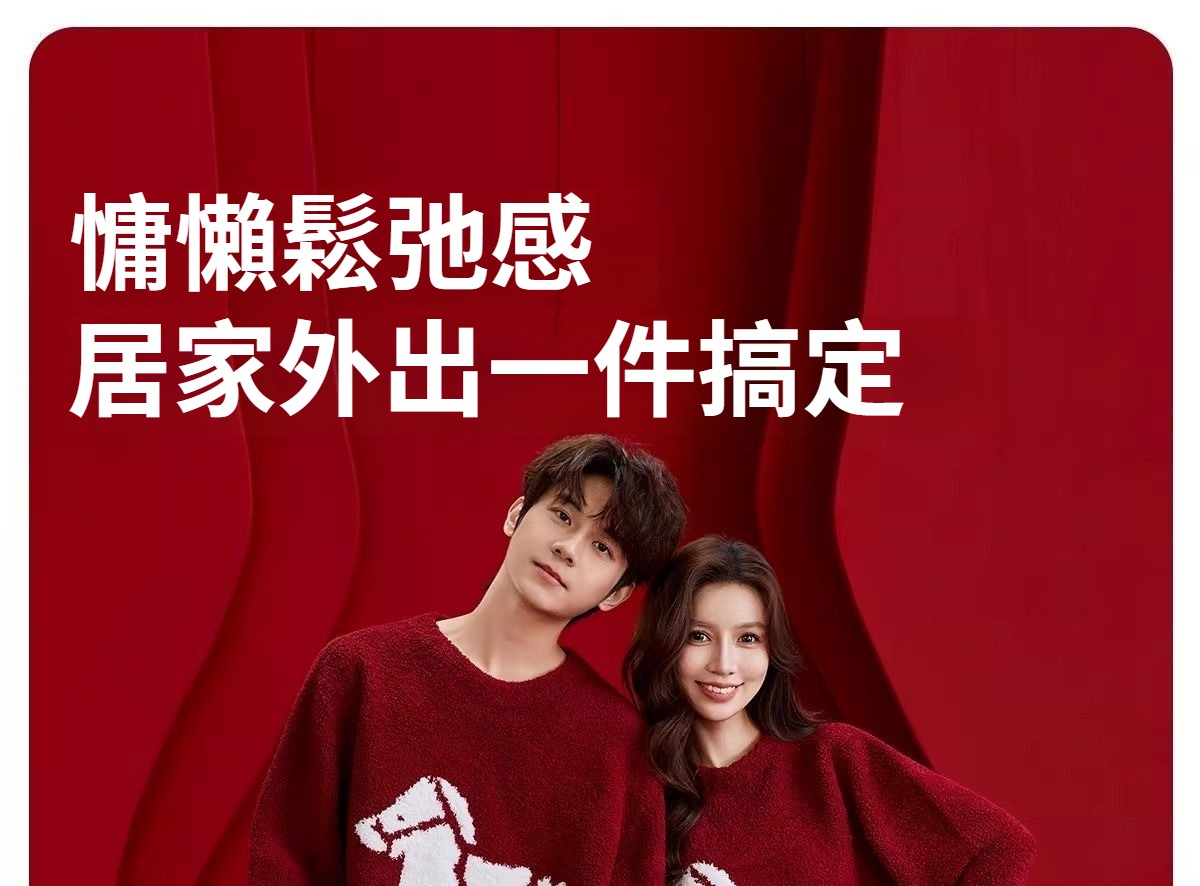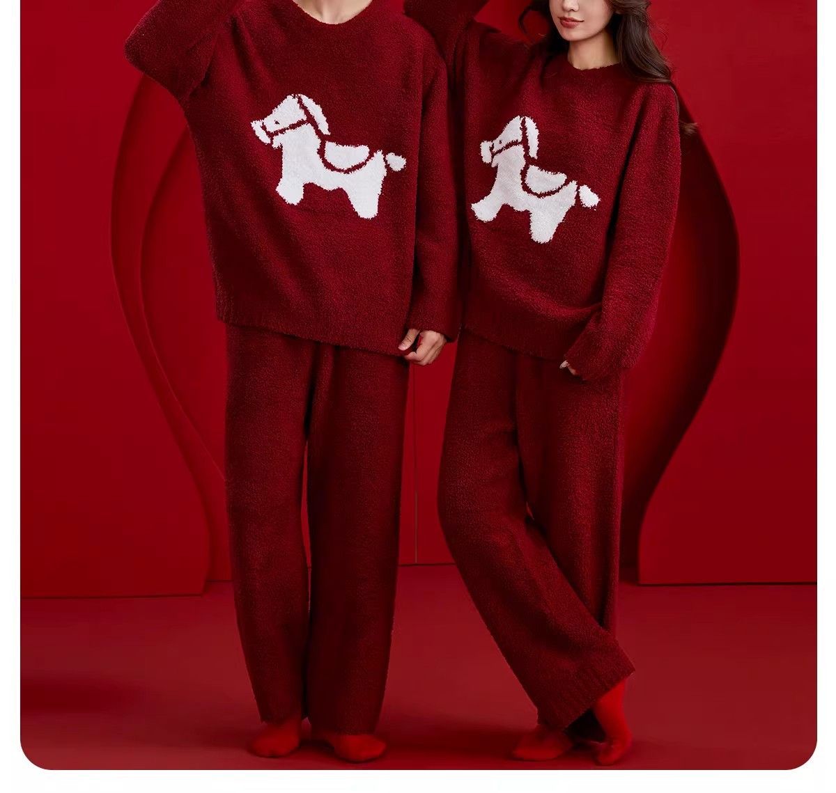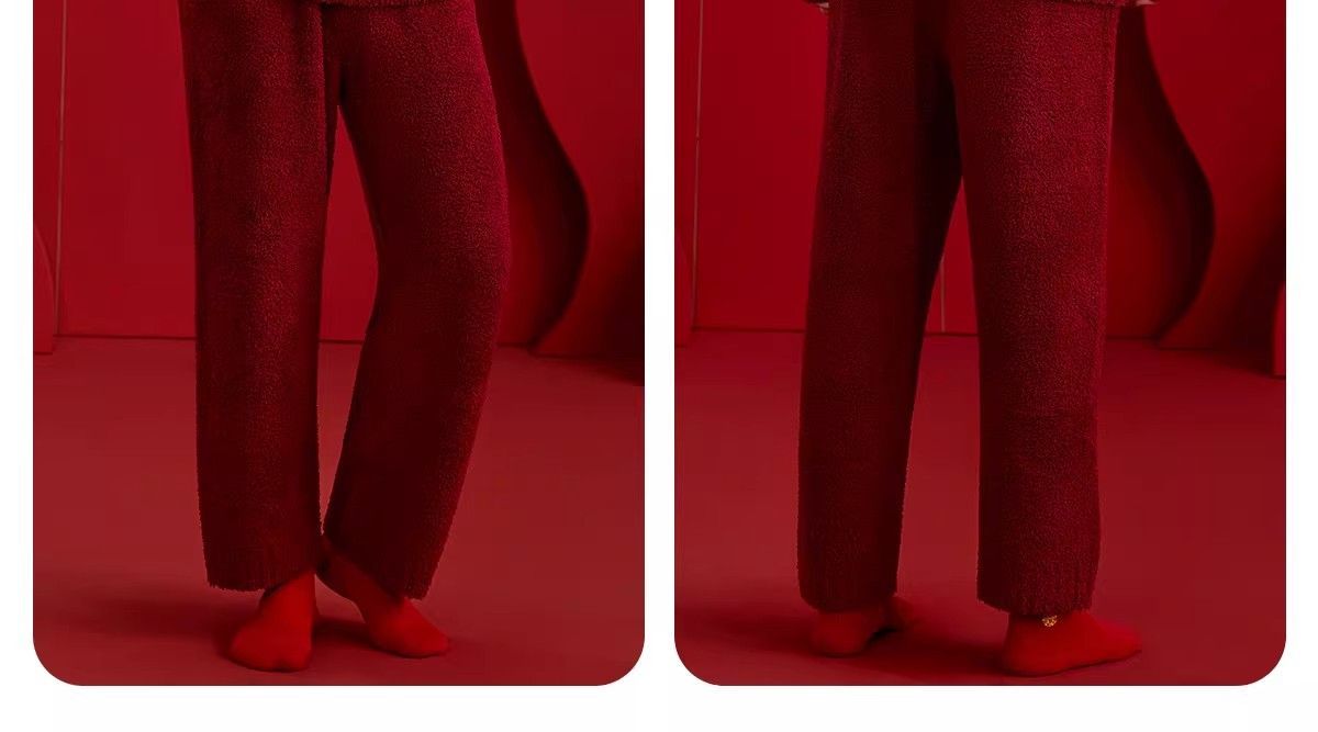 第 2 件 : 新款半邊絨紅色馬年本命年2026冬季睡衣結婚情侶男女套裝圓領