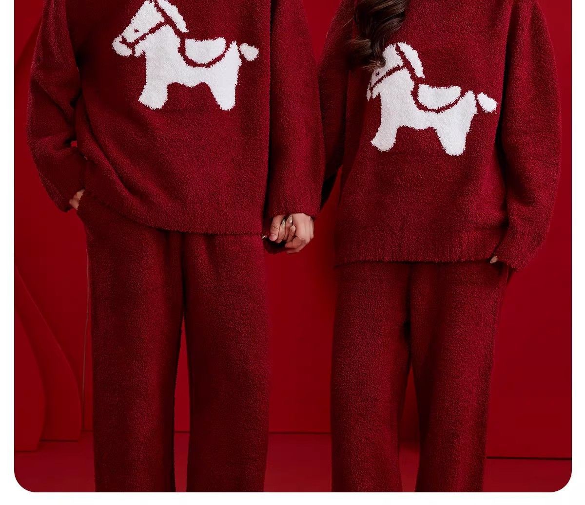 新款半邊絨紅色馬年本命年2026冬季睡衣,結婚情侶男女套裝圓領