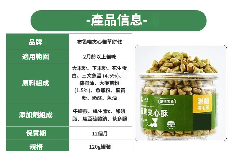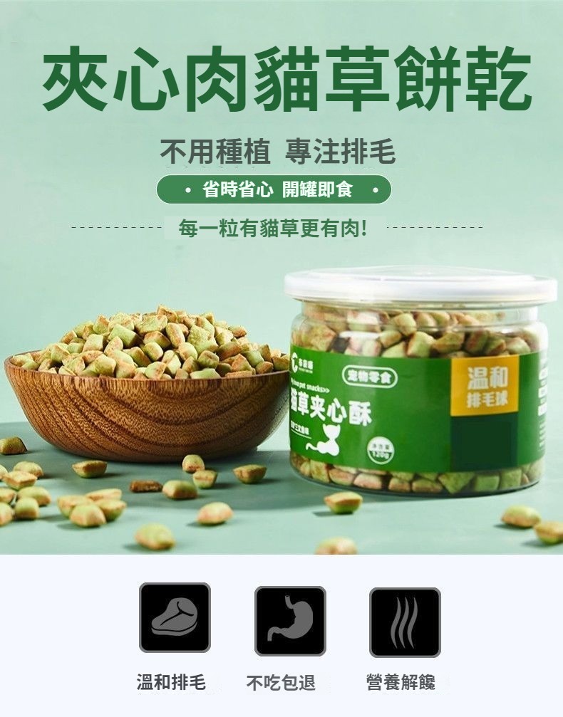 貓咪零食餅乾溫和排毛球、寵物成幼貓咪夾心酥貓草零食餅干去化排毛球凍干顆粒營養即食磨牙 NT$ 999