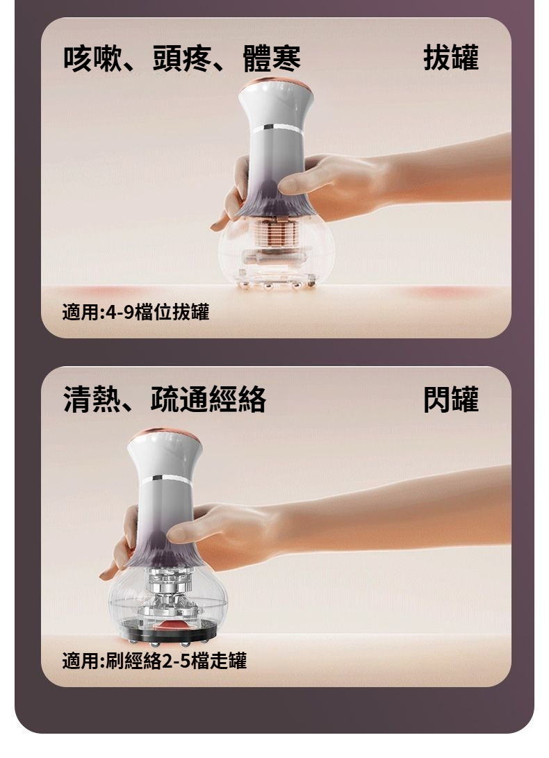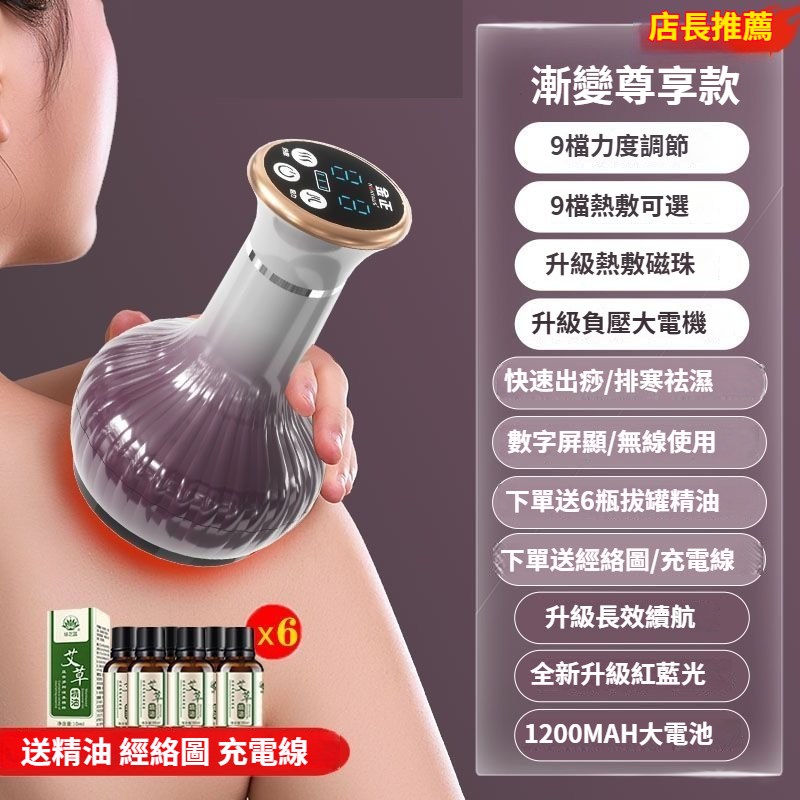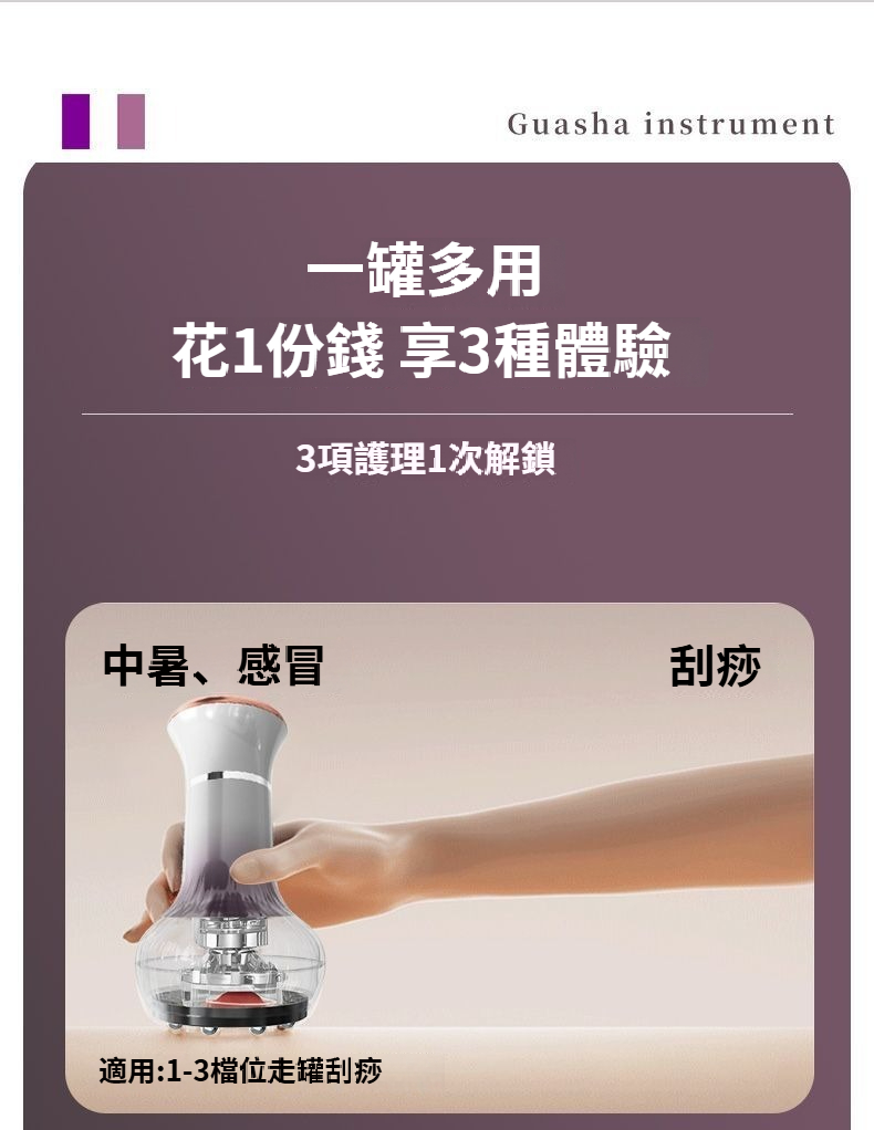 【電動多功能拔罐器刮痧儀】家用熱敷背部疏通祛濕排寒腹部按摩神器。升級6大功能:1.刮痧 2.走罐 3.拔罐 4.熱敷 5.藍紅光理療 6.負壓大吸力~~