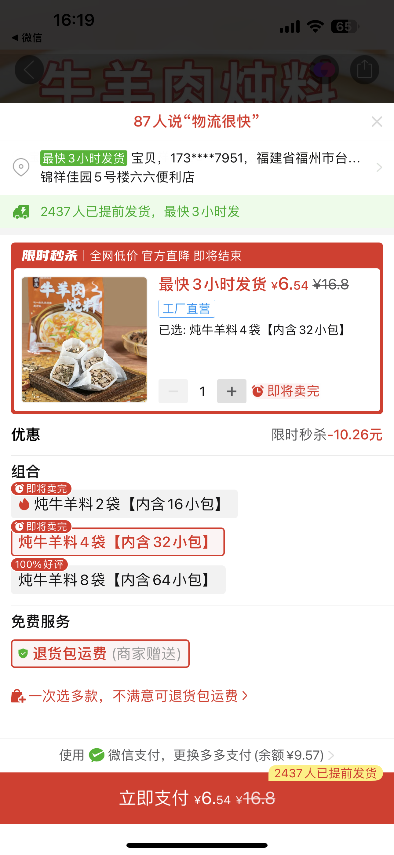 湯** 搶購成功 2分鐘前