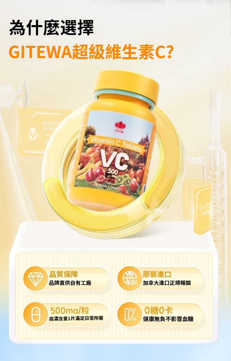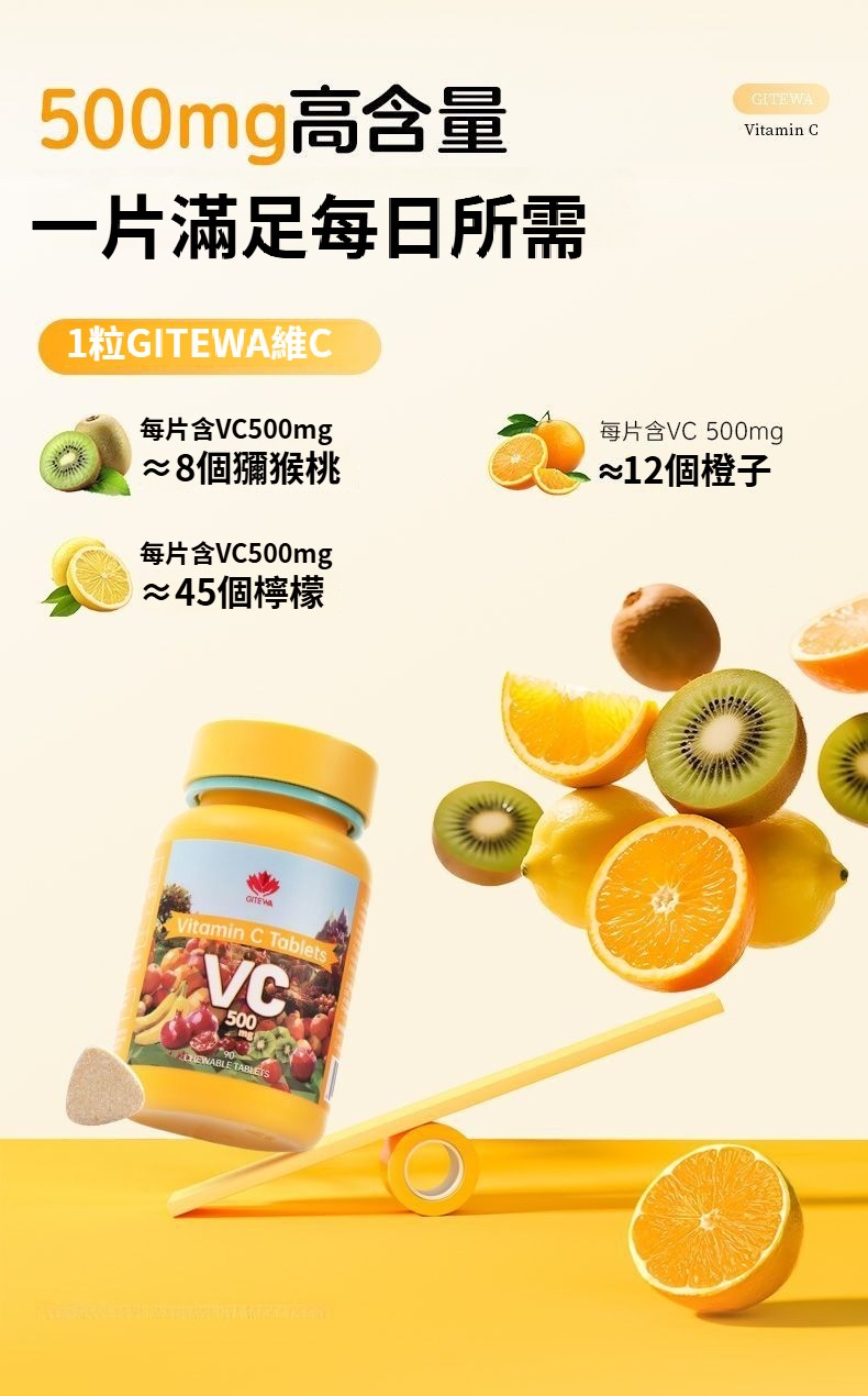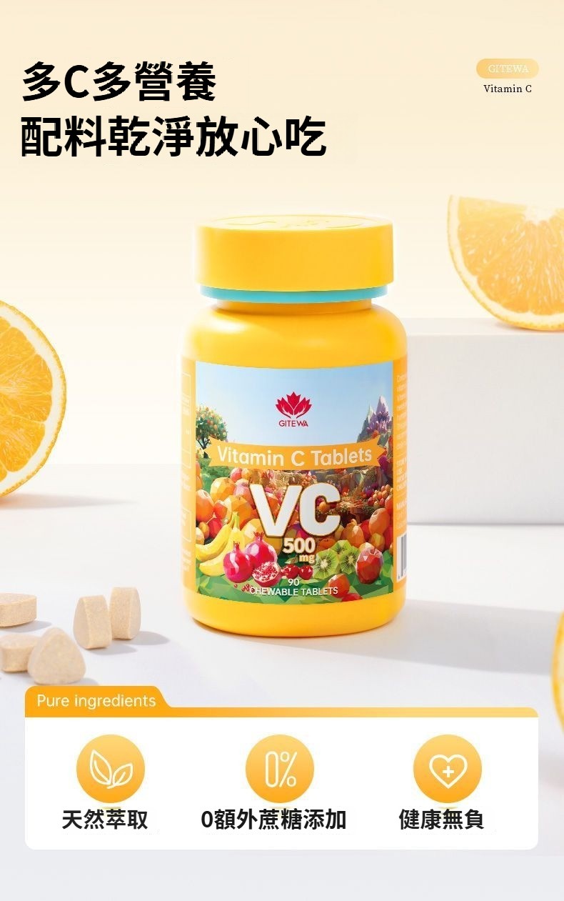 GITEWA 維生素C成人女士原廠進口維c美白抗氧化變白vc咀嚼片