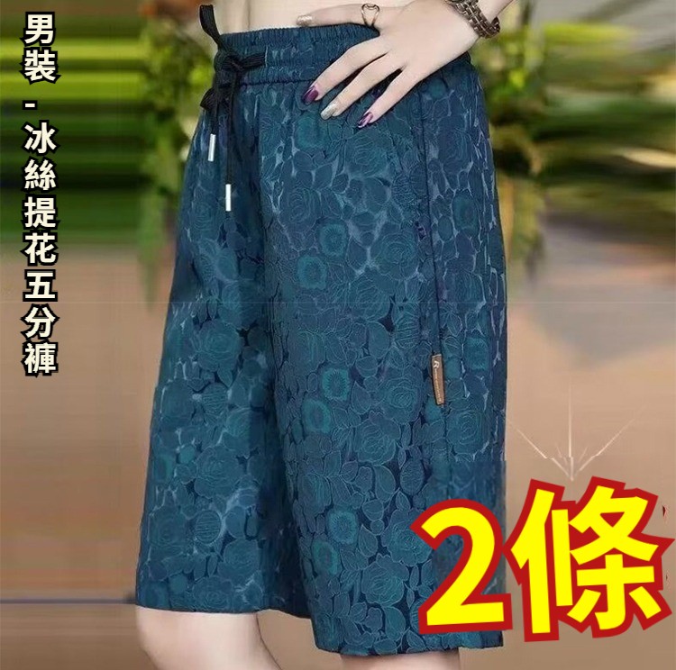 第 2 件 : 休閒短褲男士2025夏季薄款彈性舒適五分褲高街提花百搭直筒褲潮流