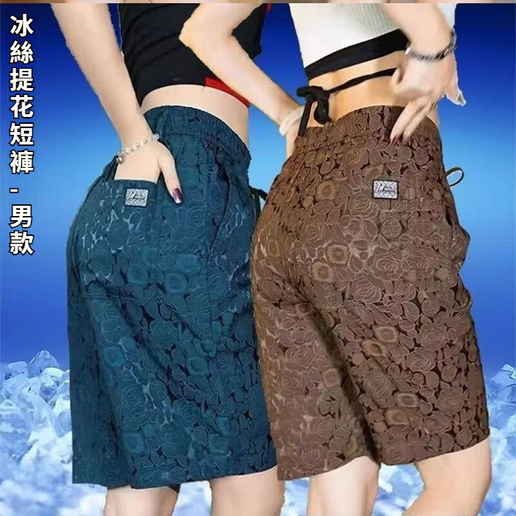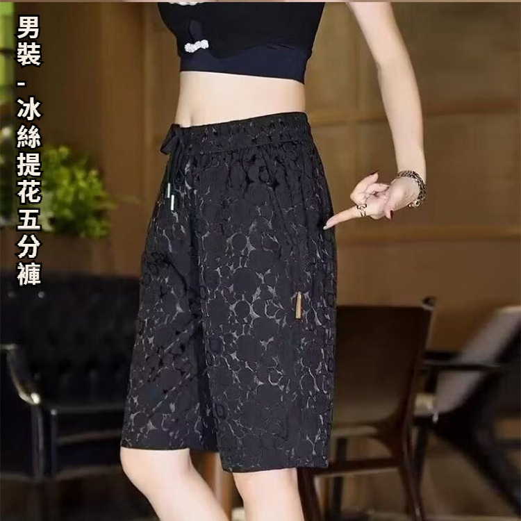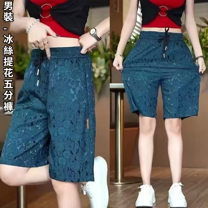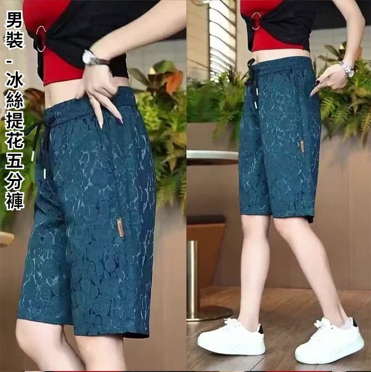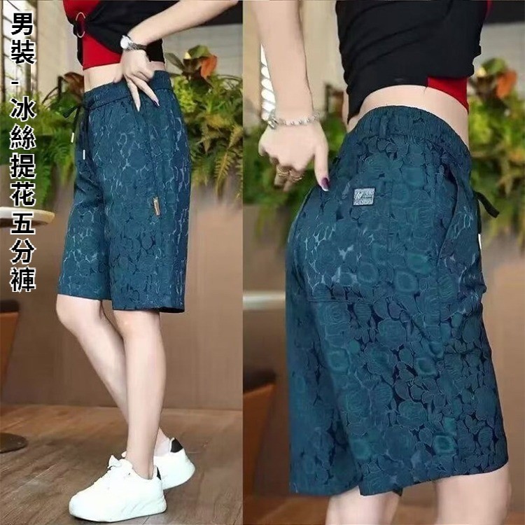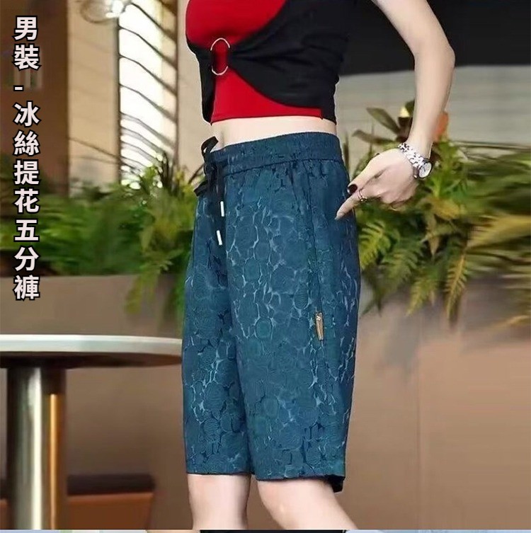 第 1 件 : 休閒短褲男士2025夏季薄款彈性舒適五分褲高街提花百搭直筒褲潮流