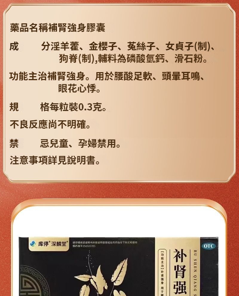 補腎強身膠囊,腰酸足軟 頭暈耳鳴 眼花心悸