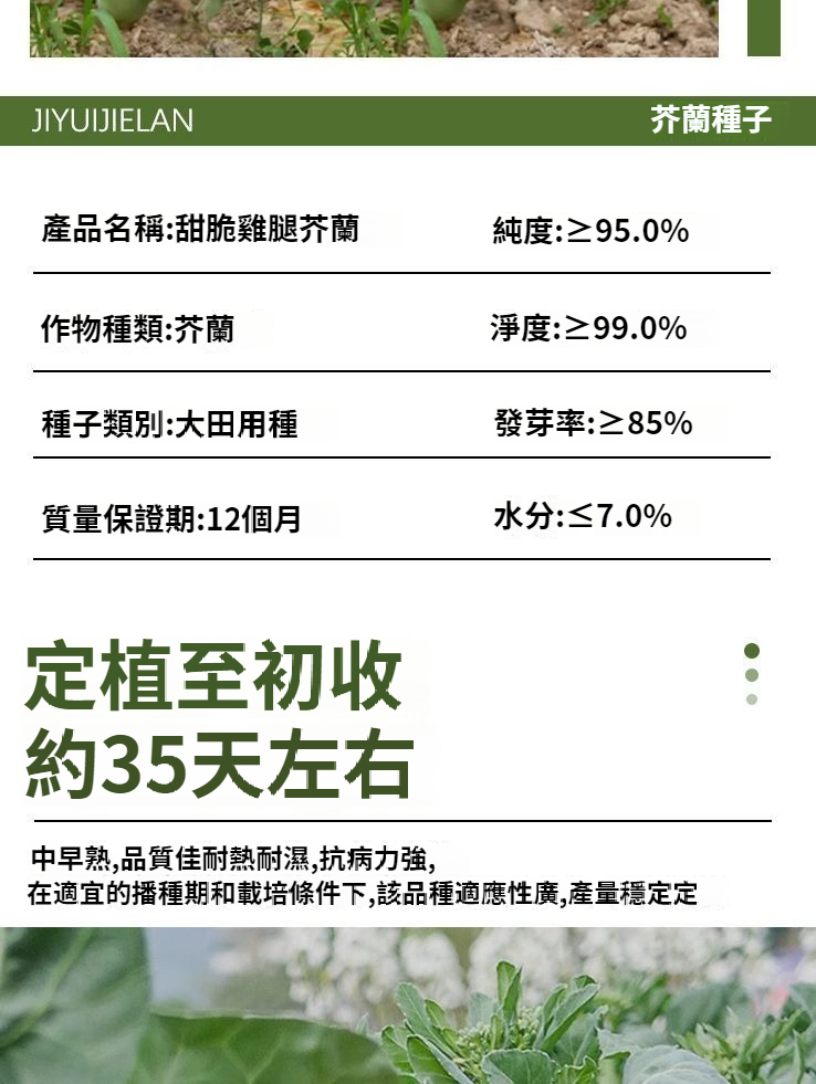 【一株抵一盘,鲜爽霸餐桌——雜腿芥蘭,當季鮮脆王者!】雞腿芥藍 營養蔬菜 冬季盛產 陽台盆栽 觀賞蔬菜 耐寒品種 家庭菜園 有機種植 快速收成【出貨快速】 NT$ 799