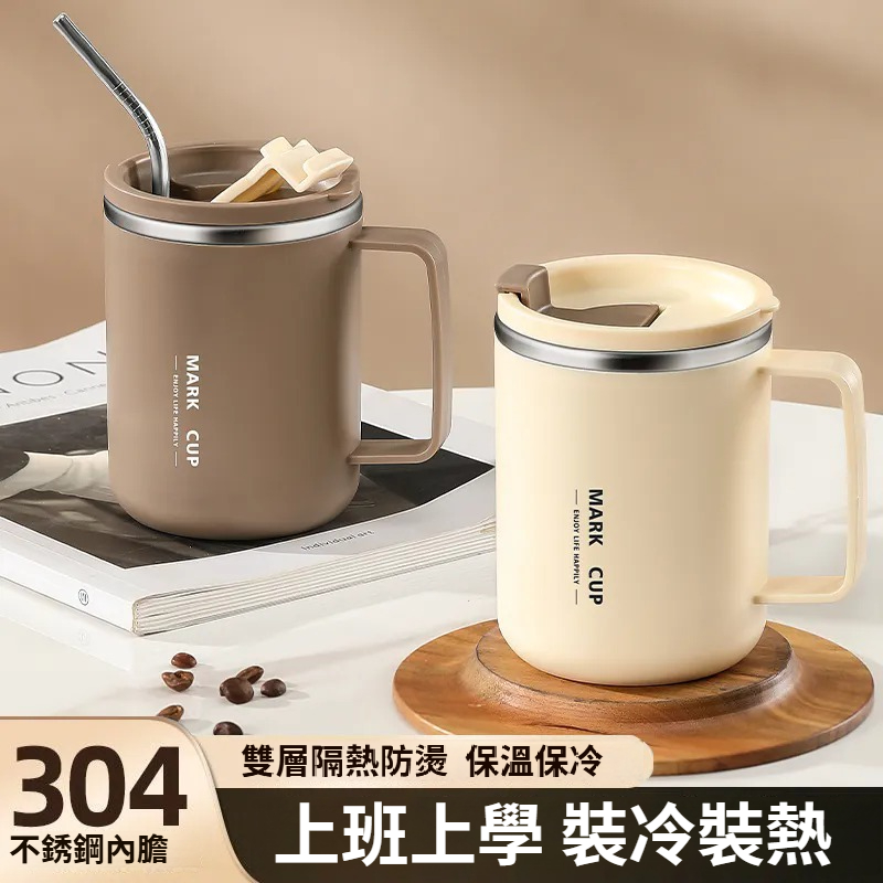 第 1 件 : 304不銹鋼馬克杯雙層防燙家用水杯辦公帶蓋辦公室茶杯杯咖啡杯