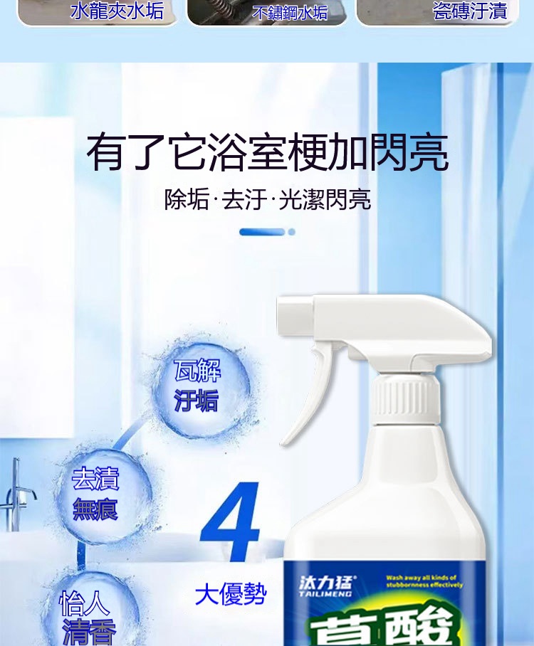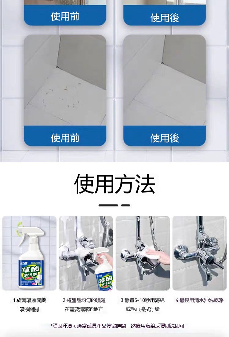 【多功能草酸清潔劑】強力去污,輕鬆瓦解頑固污垢、皂垢、油垢,深入 細縫,深層潔淨,除鋪除垢,抑菌除臭,給你潔淨新空氣 NT$ 899