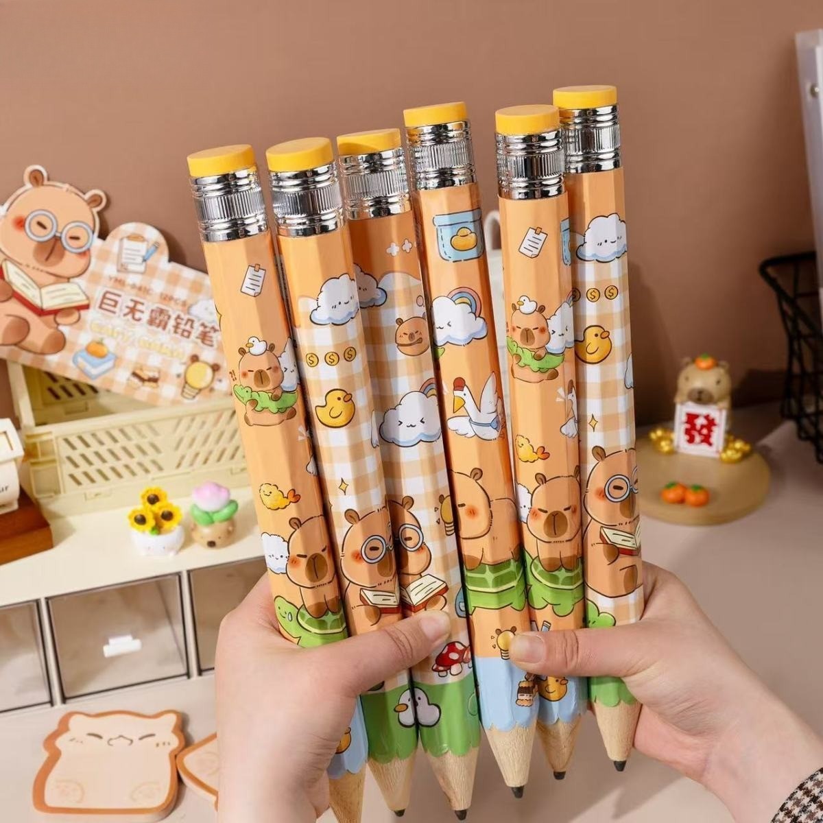 新款超大號鉛筆卡通高顏值卡皮巴拉巨無霸解壓筆學生搞怪筆