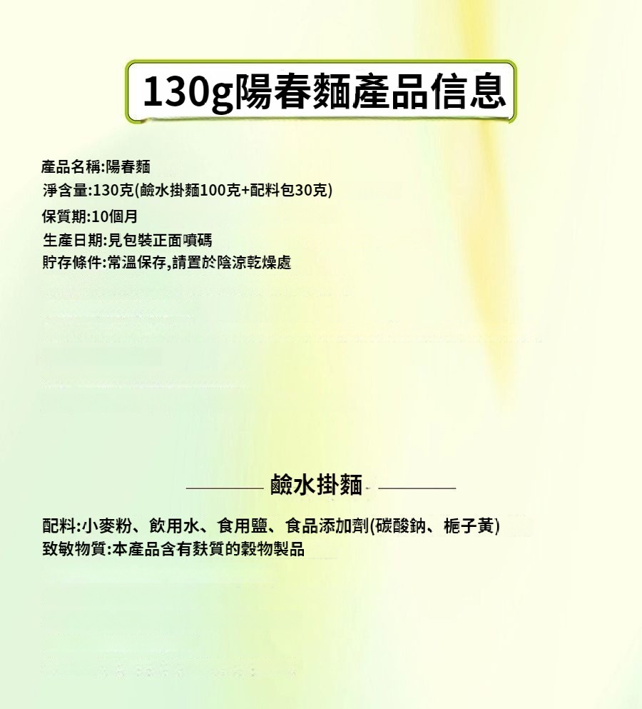 陽春面130g*12袋 】 1499