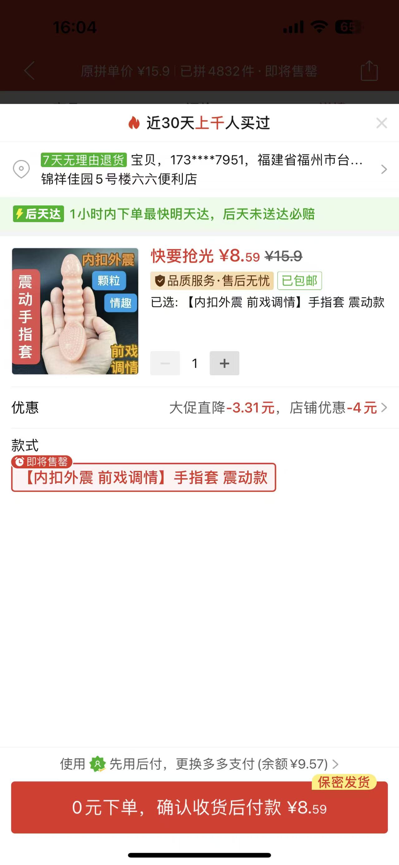 ①极品虎王3瓶②印度蓝P 10粒 ③男性增活凝胶2隻④藍鑽1粒⑤震動手指套1個(97.59元)