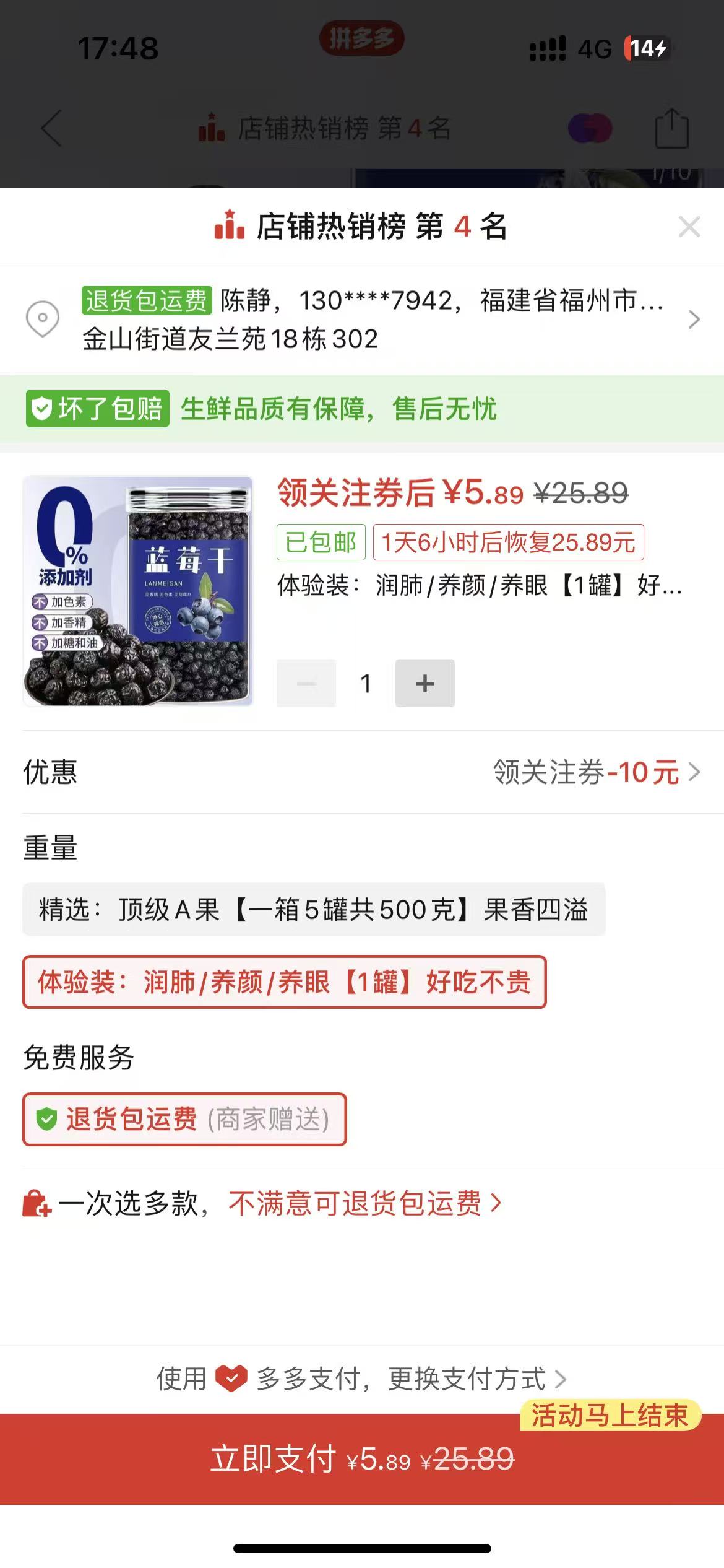 ④藍莓乾1罐 5.89 https://mobile.yangkeduo.com/goods1.html?ps=2gL30nMML4