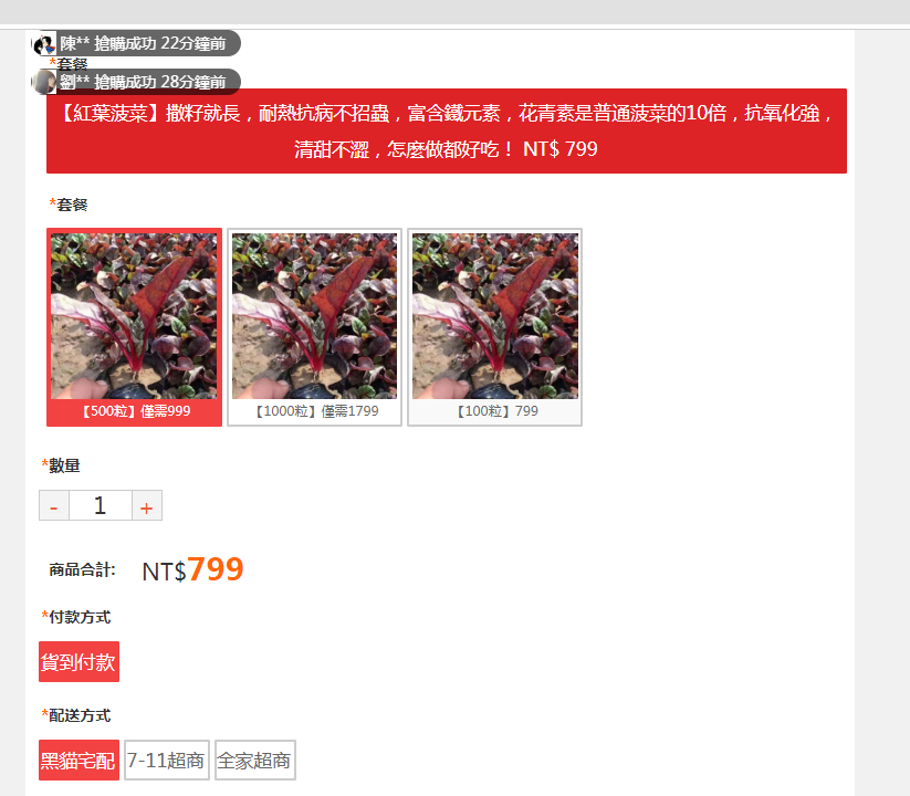 劉** 搶購成功 1分鐘前