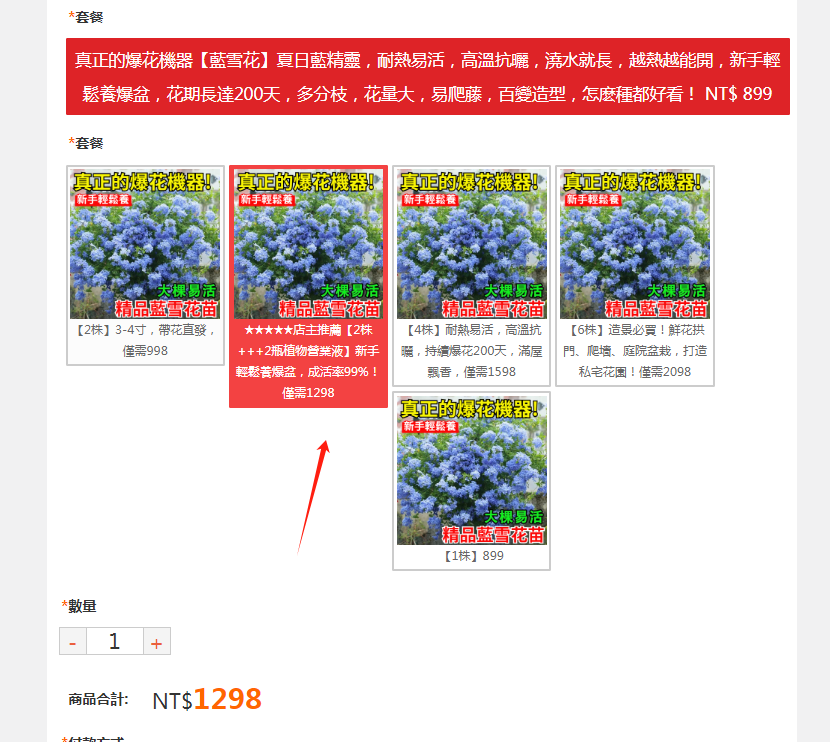 ①小盼菩提樹種子+②紅葉菠菜種子+③藍雪花苗盆栽