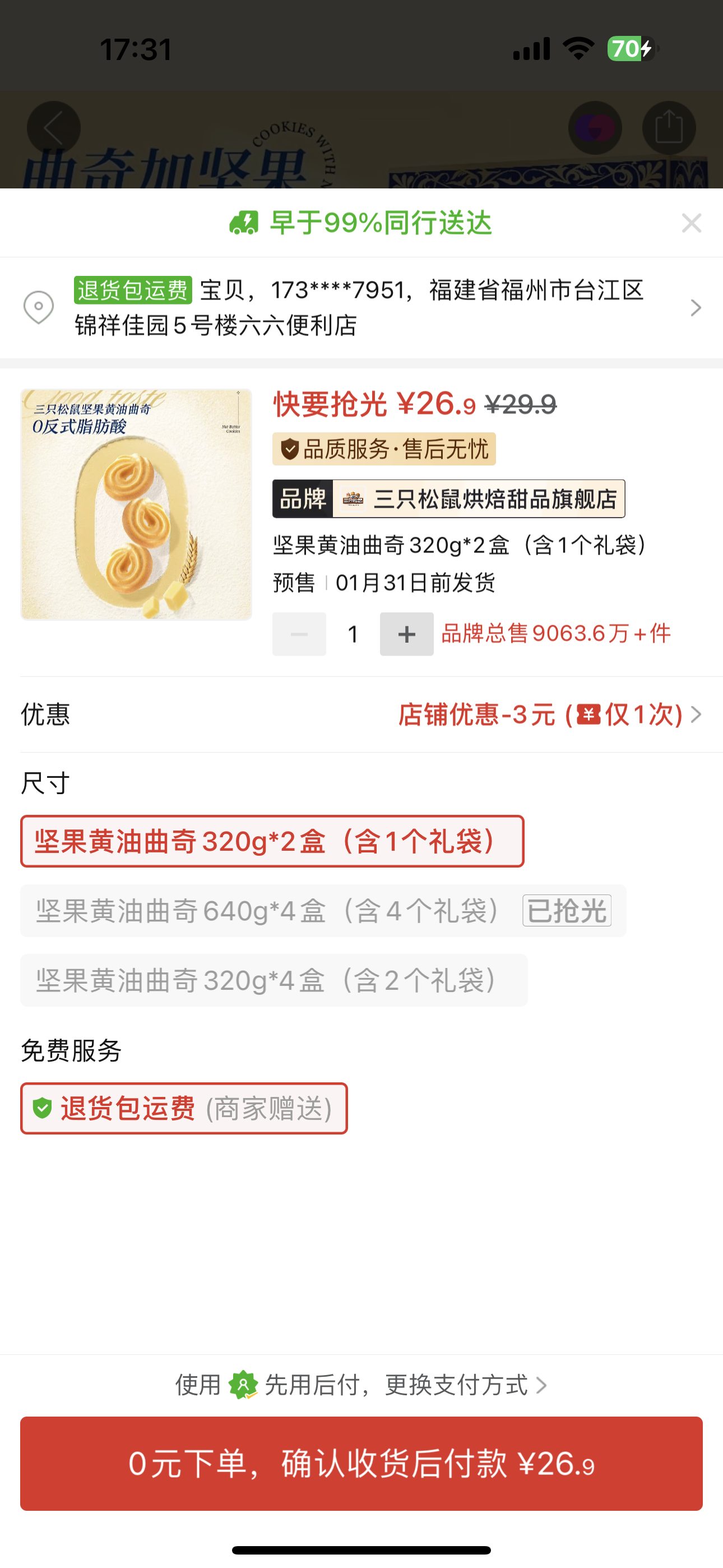 ①絲巾發財樹堅果禮盒2入組+②三隻松鼠堅果黃油禮盒1入組(86.7元)