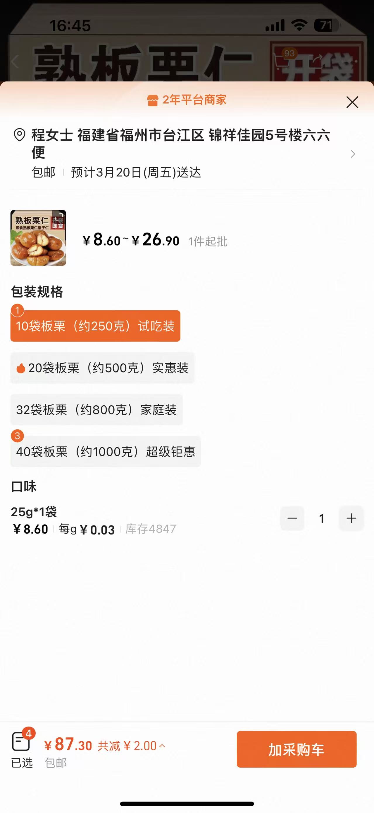 即食板栗仁130袋(87.3元)