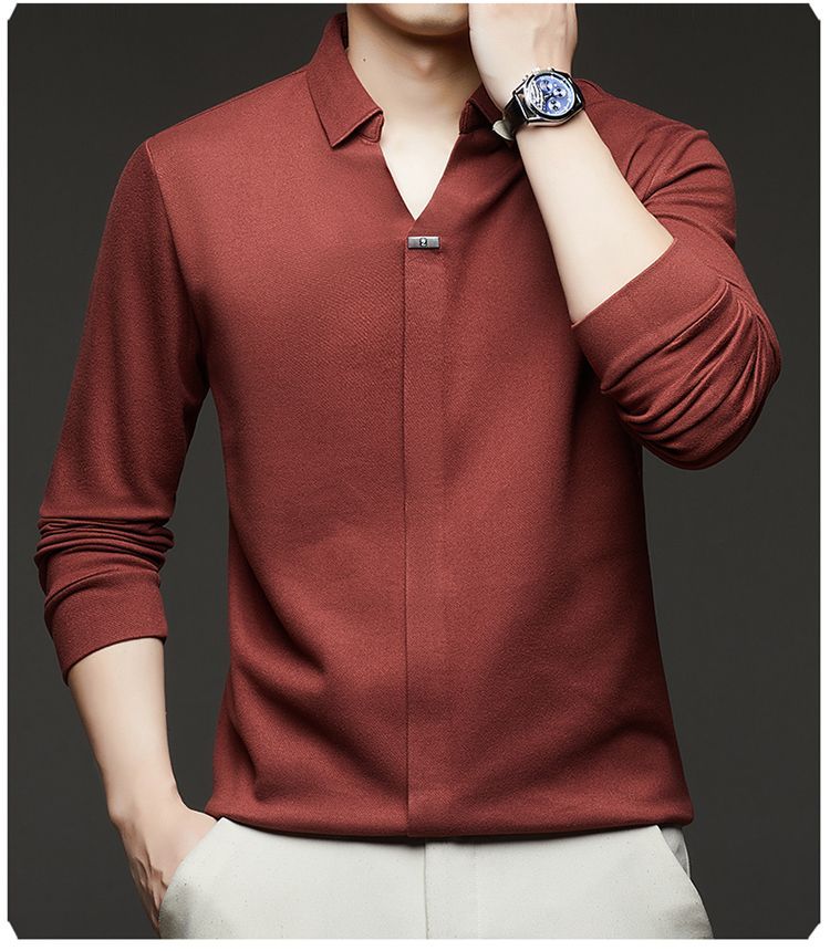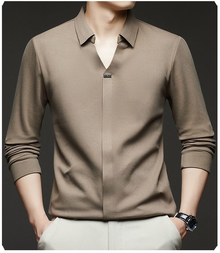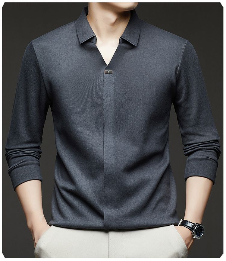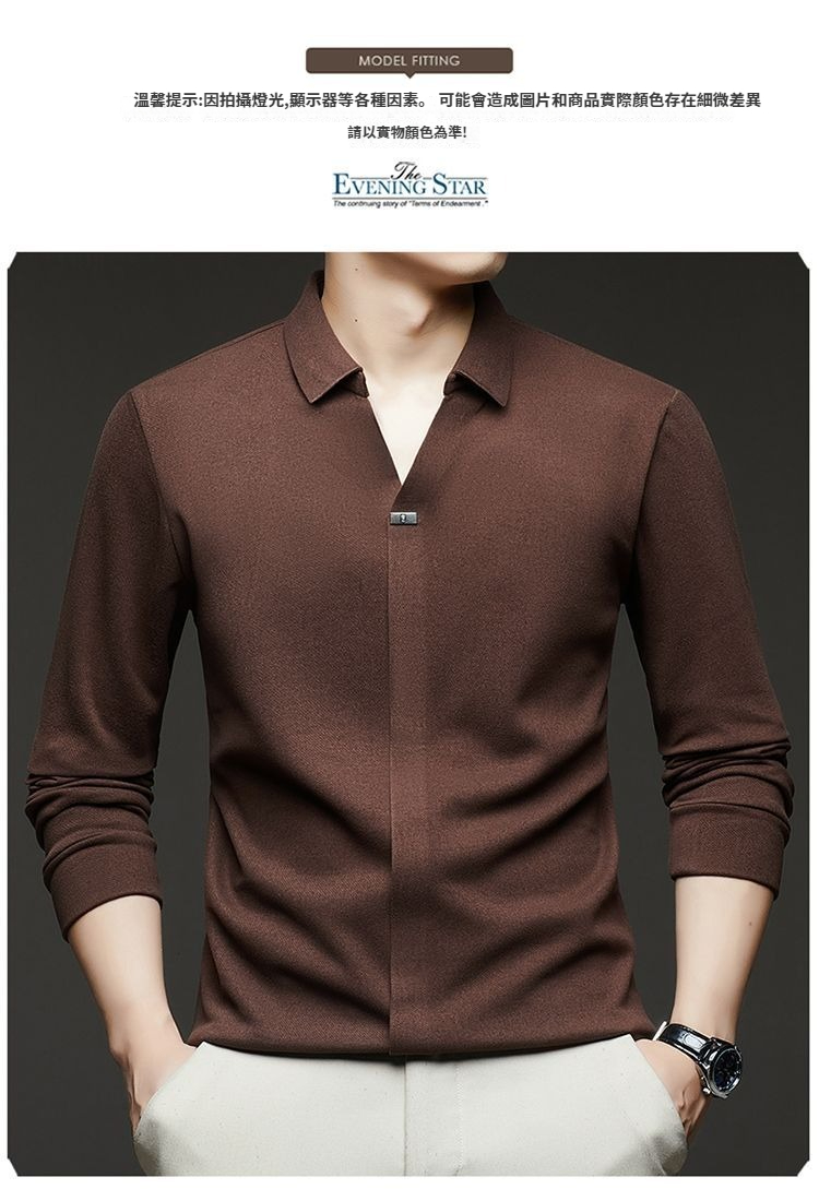 第 2 件 : 2025年新款秋季翻領長袖上衣男士男士休閒商務polo衫t卹