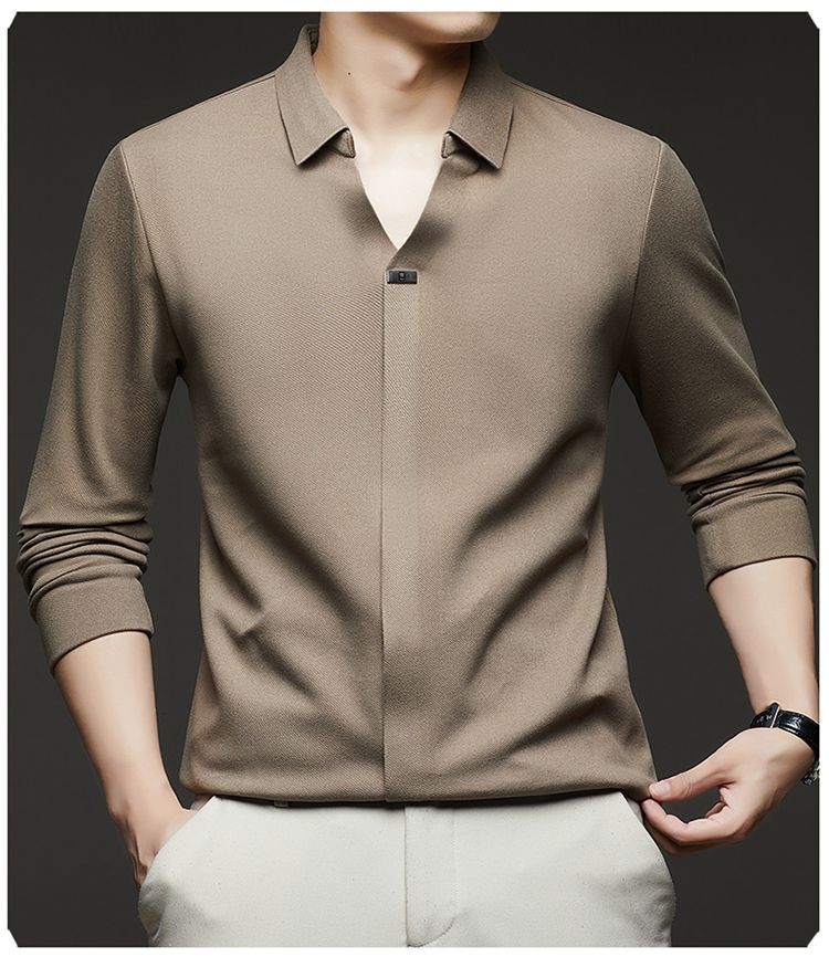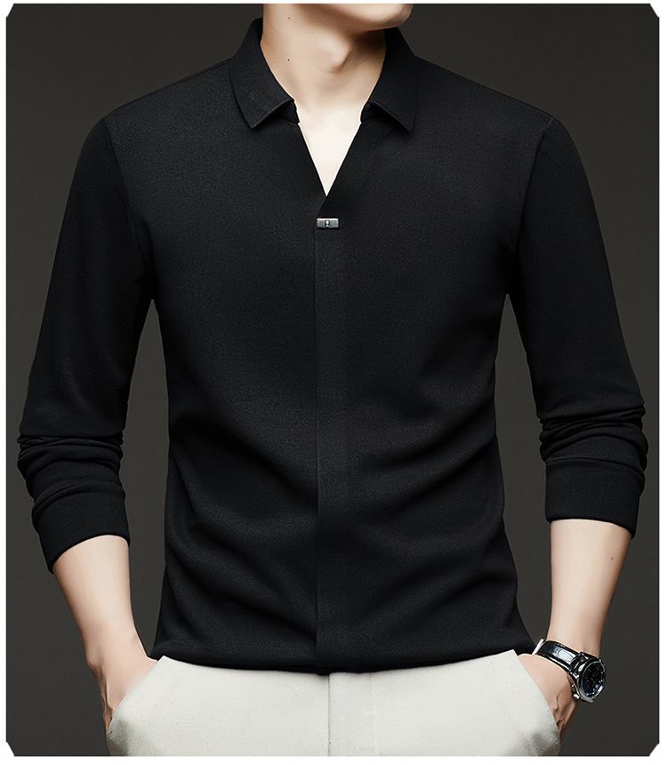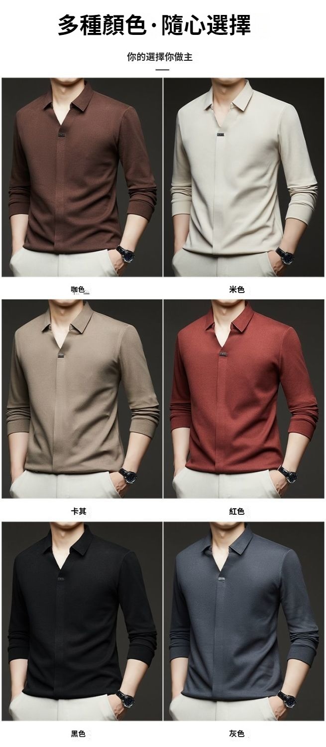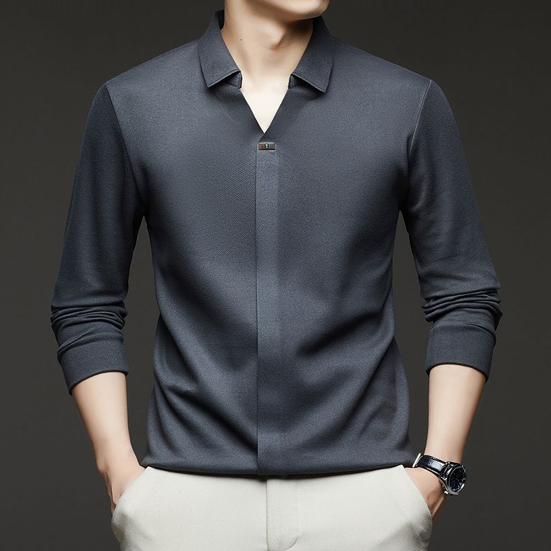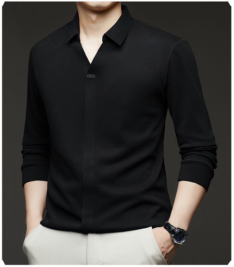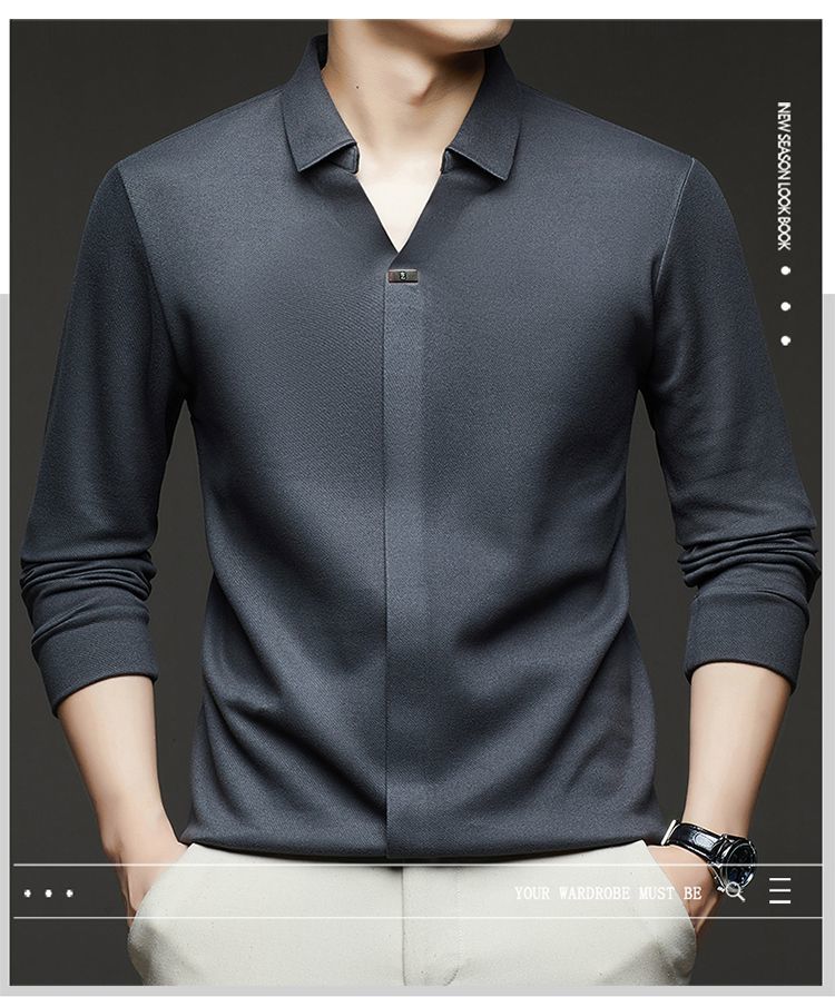 第 1 件 : 2025年新款秋季翻領長袖上衣男士男士休閒商務polo衫t卹