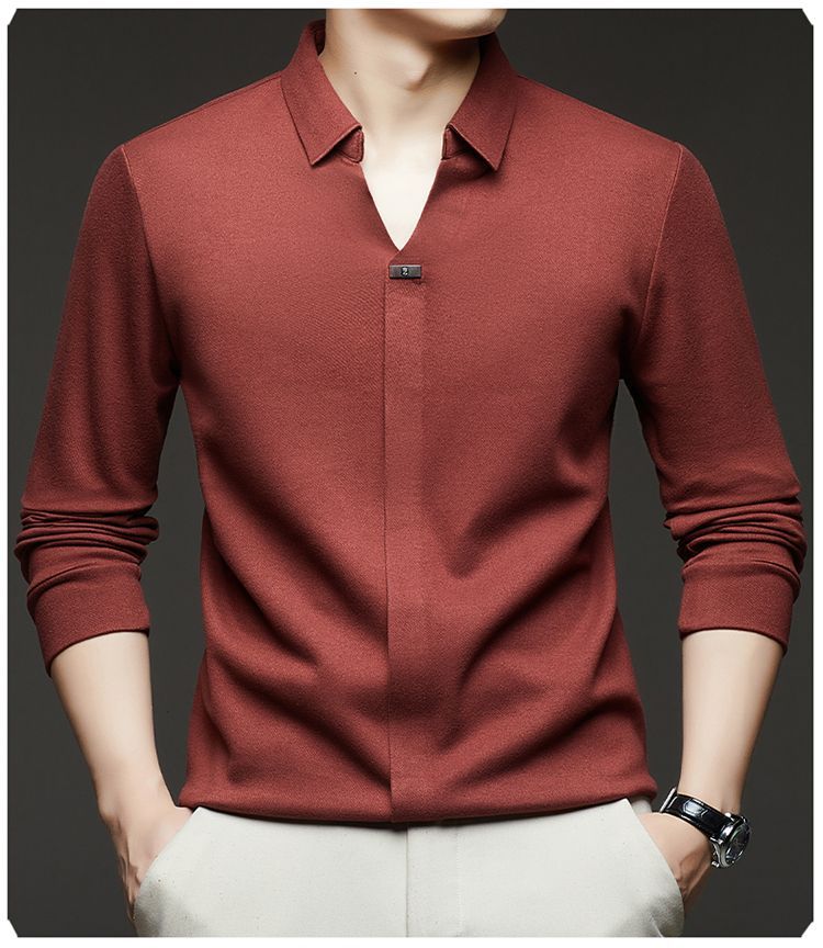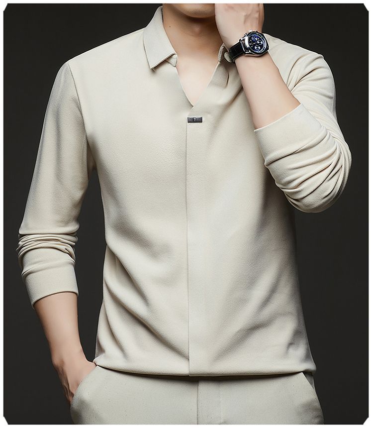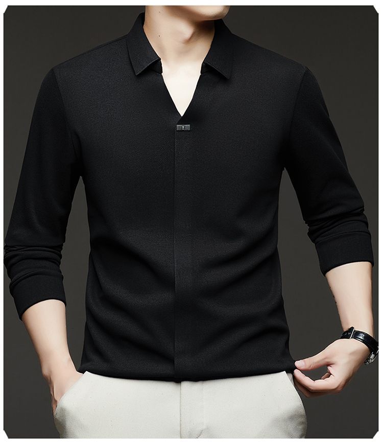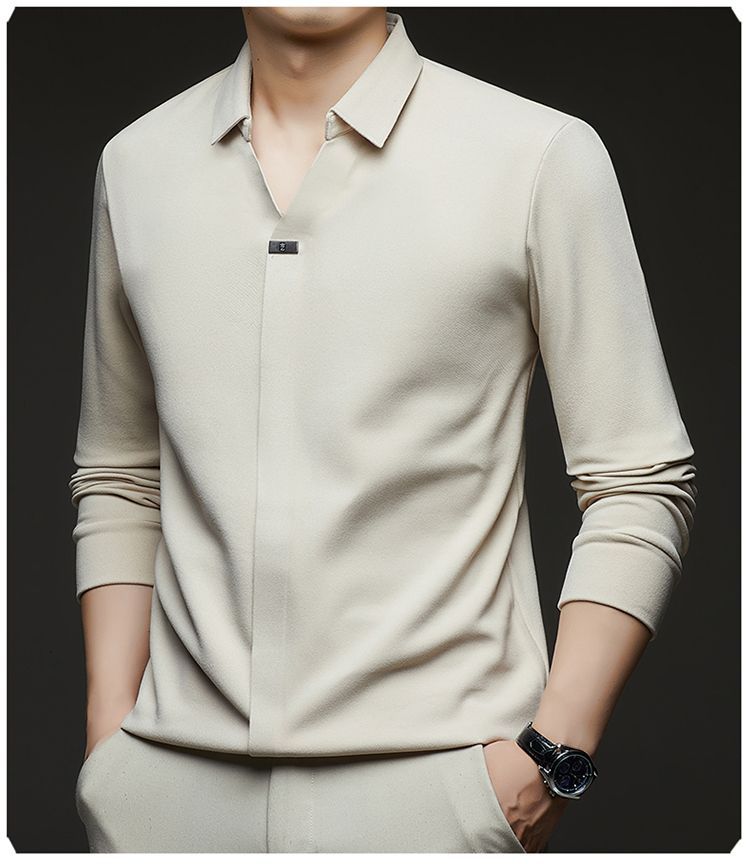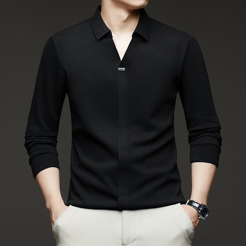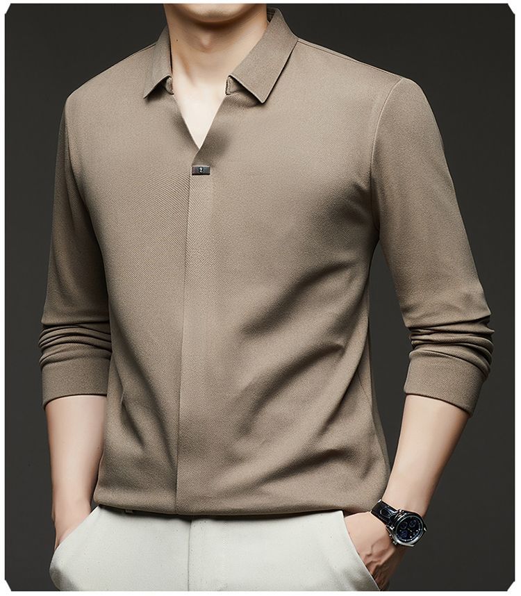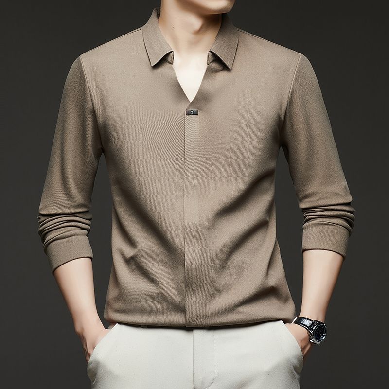第 1 件 : 2025年新款秋季翻領長袖上衣男士男士休閒商務polo衫t卹