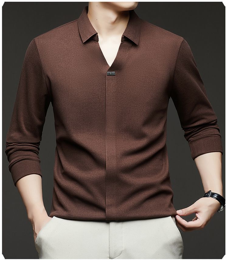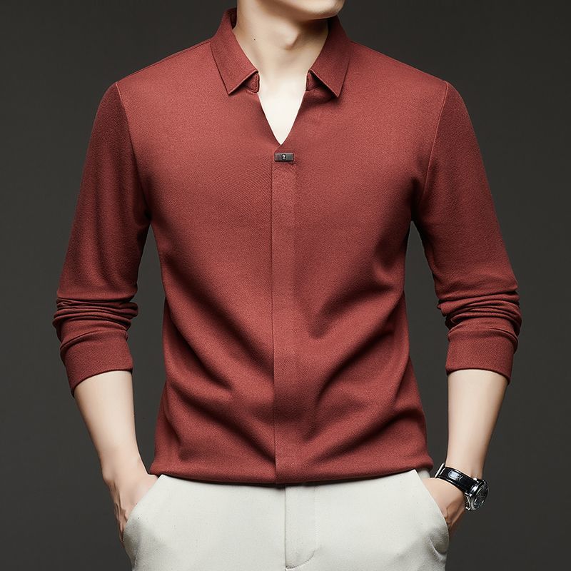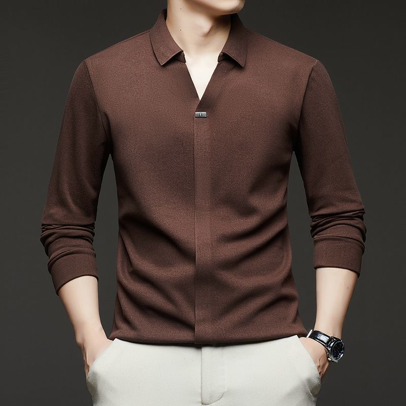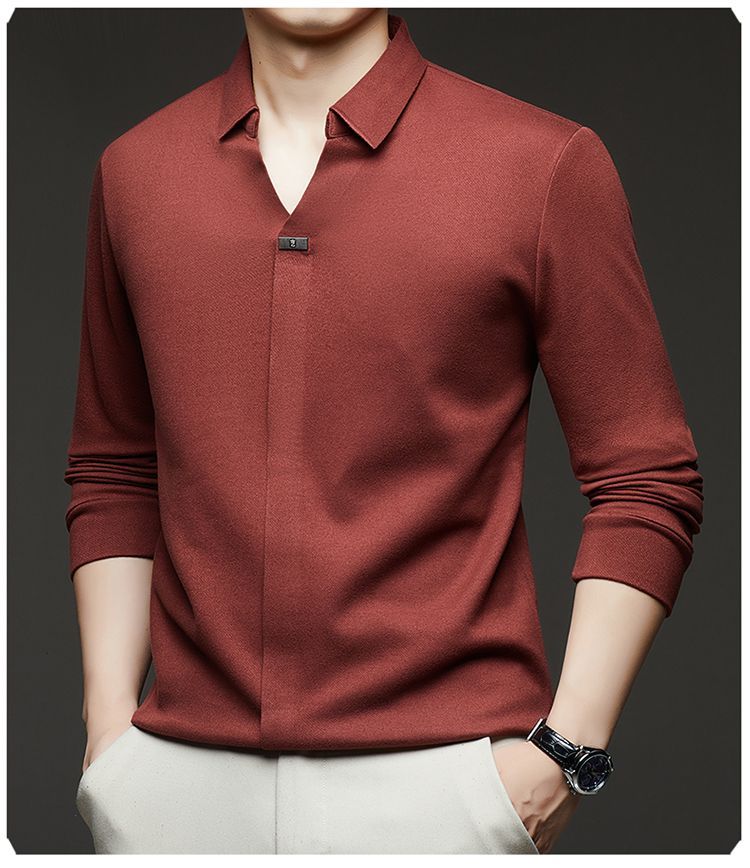 2025年新款秋季翻領長袖上衣男士男士休閒商務polo衫t卹