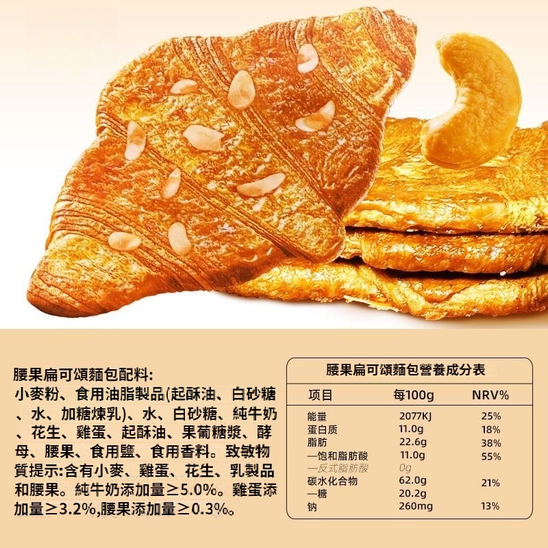 第 11 件 : 扁可頌腰果焦糖扁可頌面包網紅早餐下午茶酥脆面包休閑零食