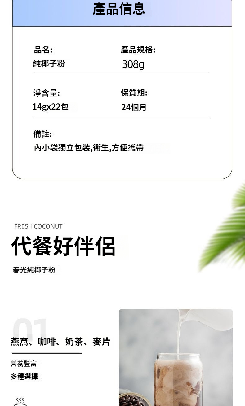 純椰子粉加量袋裝椰奶椰汁粉沖飲植物飲品小包獨立裝