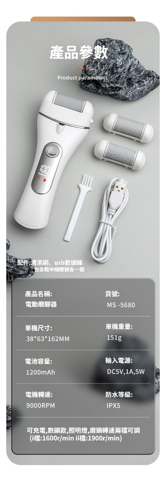 第 1 件 : 新款數顯電動磨腳器充電式去死皮老繭修腳神器自動搓腳磨腳石