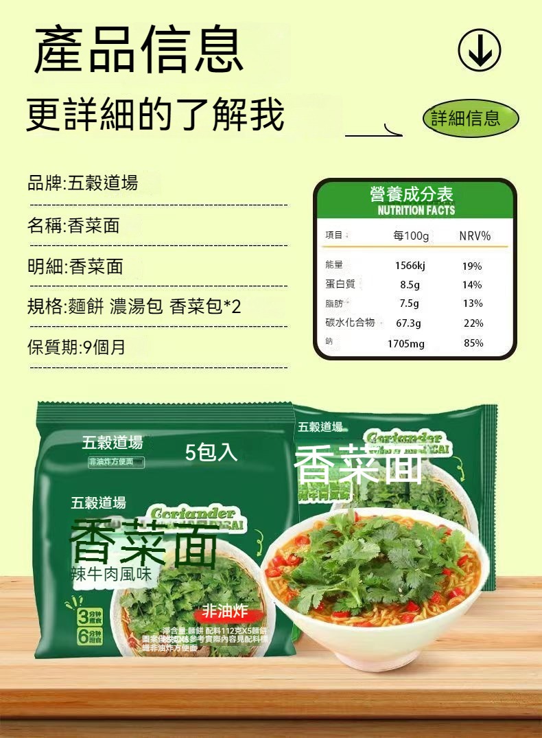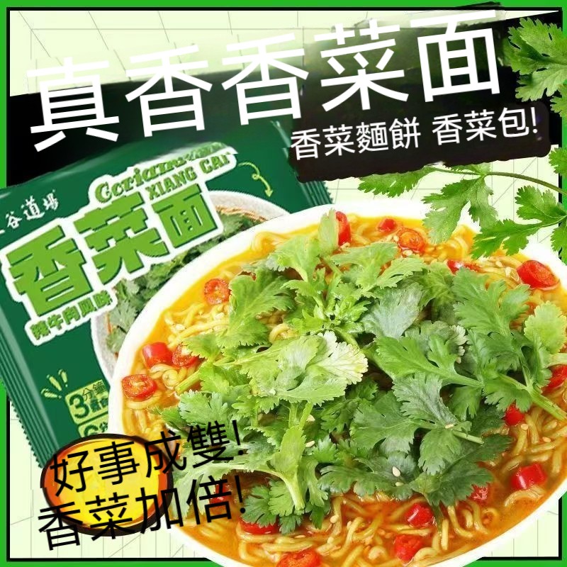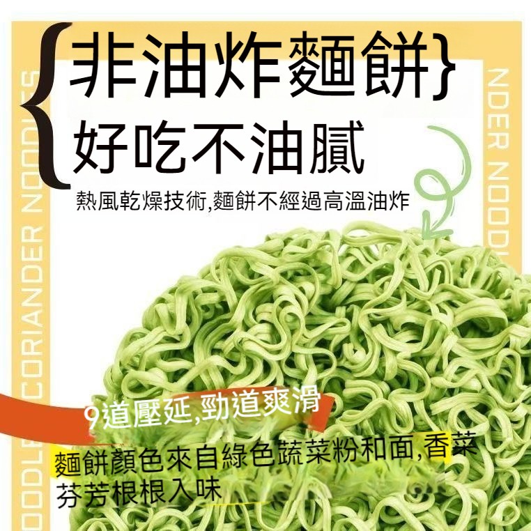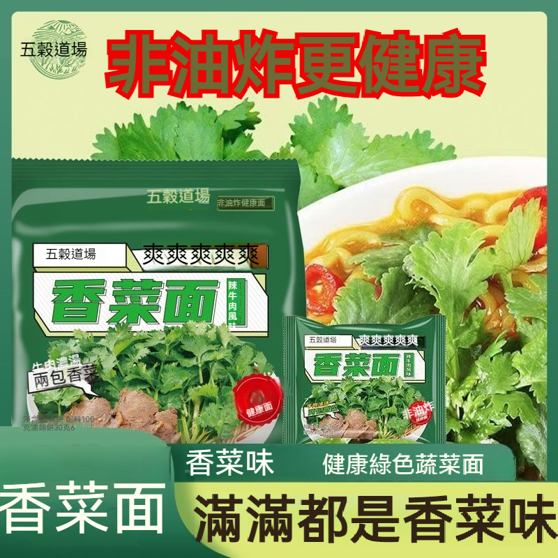 品牌【五穀道場】香菜面。 (全球好評94.5萬+條)速食免煮,低脂無油,濃郁鮮香, 適合沒時間做飯, 上班族,獨居阿公哦, 肚子餓,開一包,泡一泡就能吃上, 美味可口,滿足。綠色蔬菜食品。