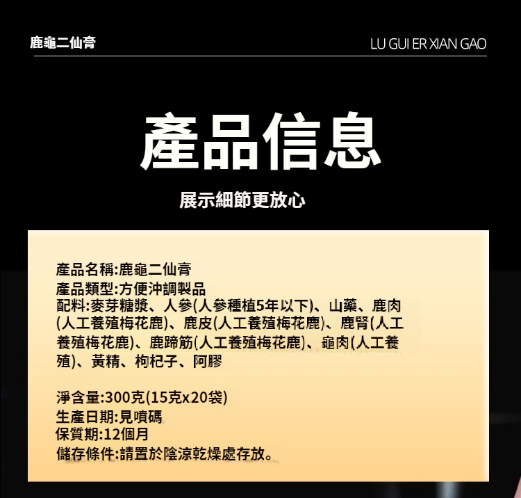 南京同仁堂鹿龜二仙膏二仙湯龜鹿二仙膠二仙丸正品龜鹿二仙