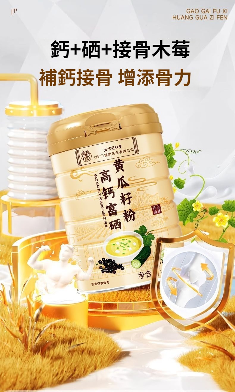 北京同仁堂黃瓜籽粉高鈣富硒接骨木莓中老年成人天然植物鈣