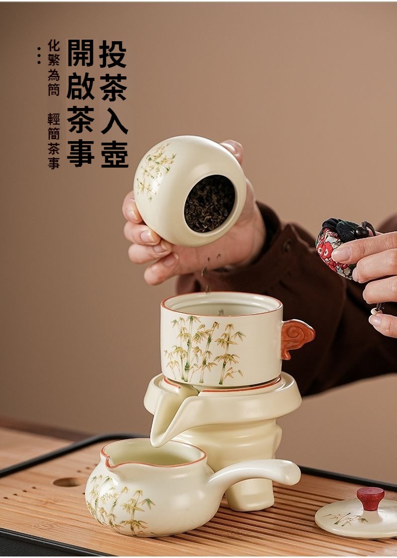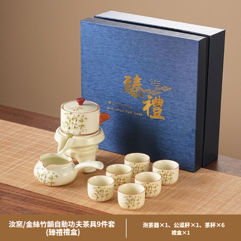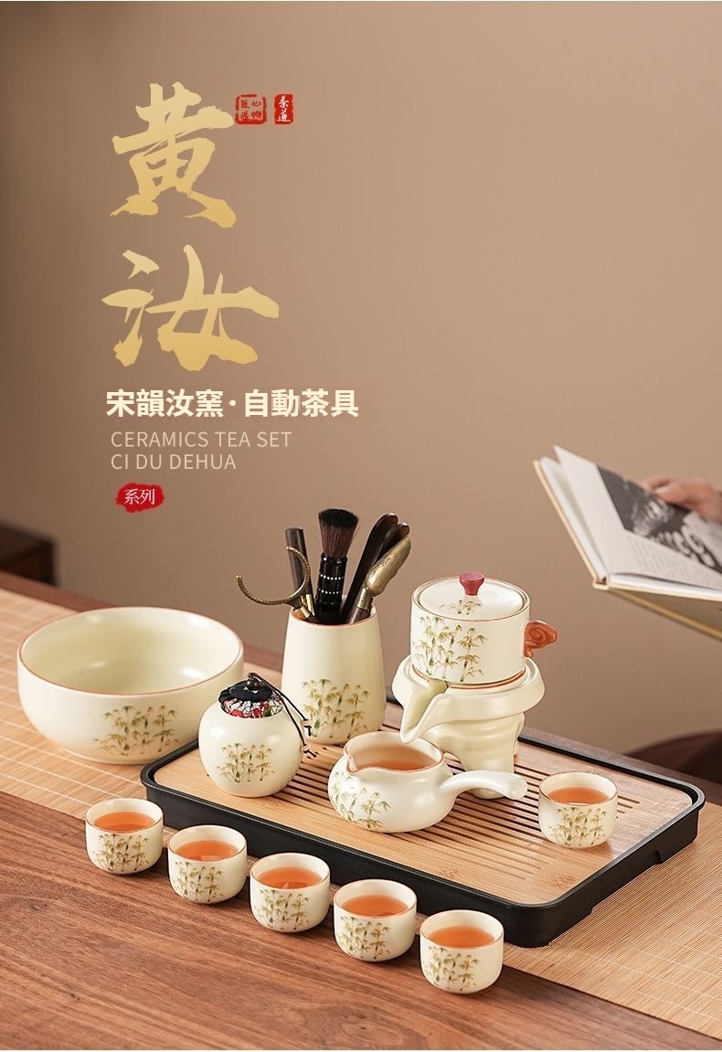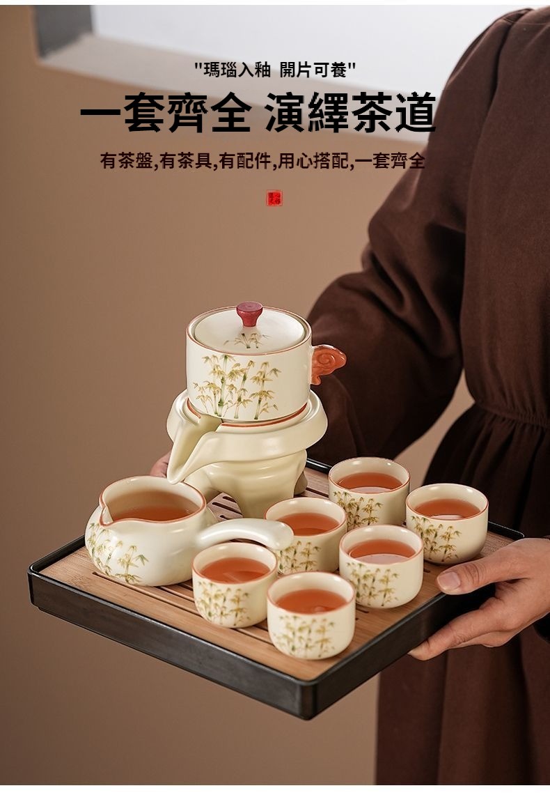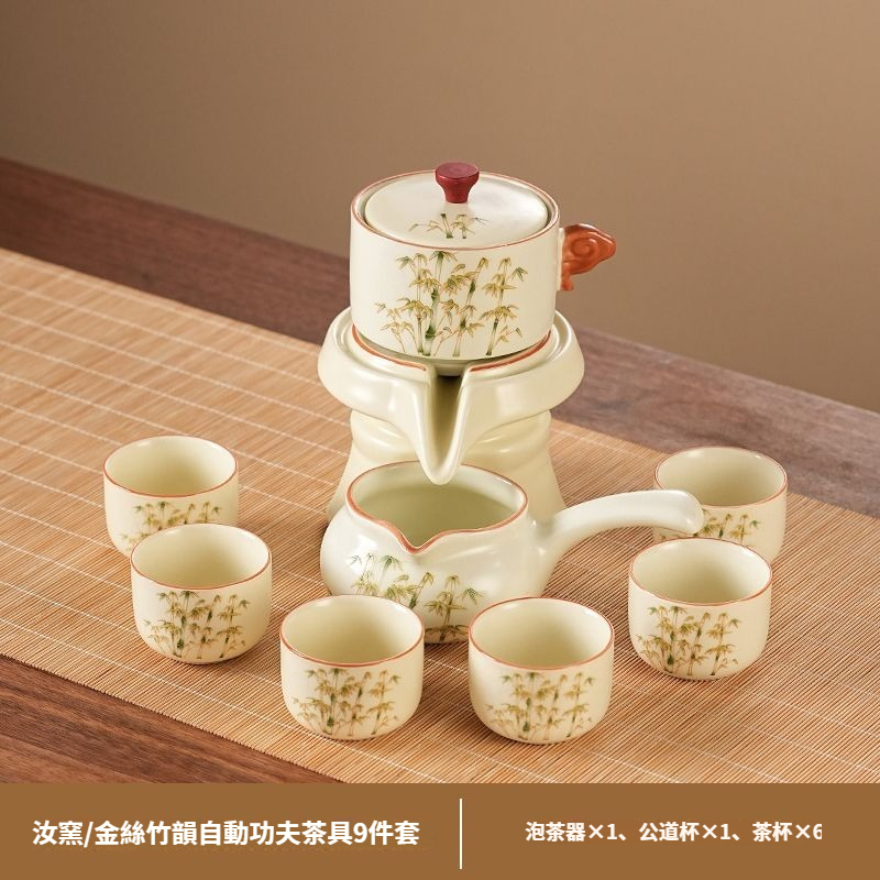 汝窯金絲自動茶具套裝家用懶人泡茶沖茶陶瓷神器石磨茶壺功夫茶杯