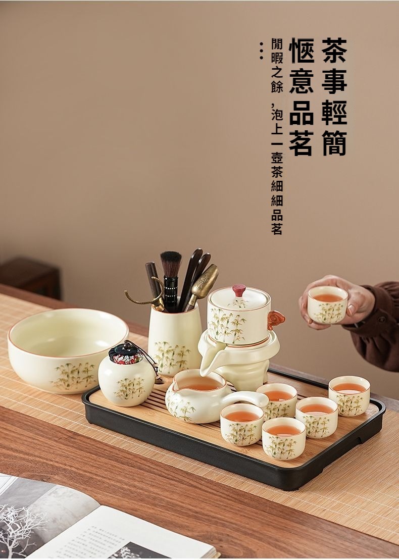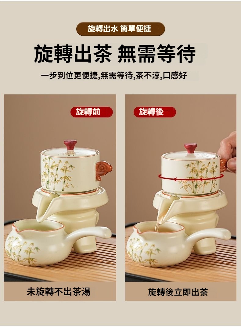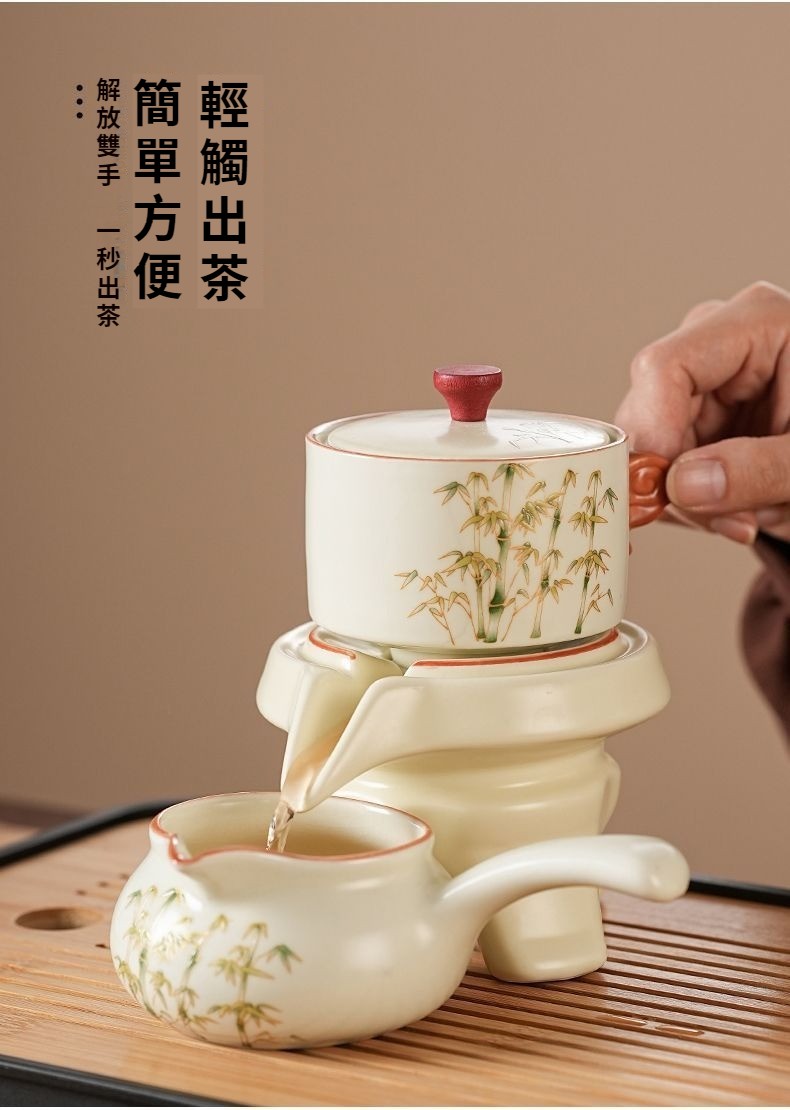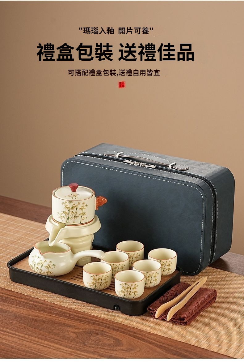 汝窯金絲自動茶具套裝家用懶人泡茶沖茶陶瓷神器石磨茶壺功夫茶杯