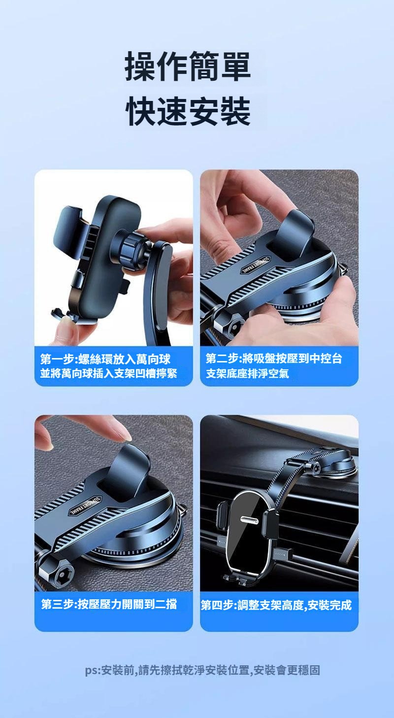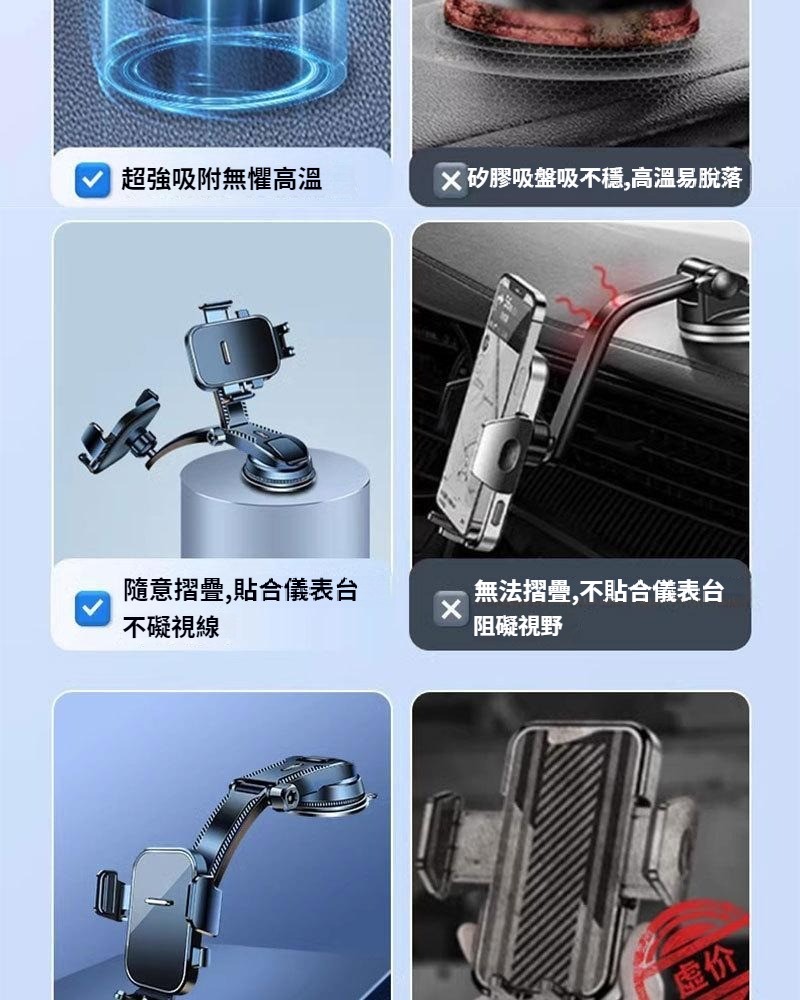 高級車用手機支架2025最新吸盤式中控伸縮導航手機重力支架 NT$ 999