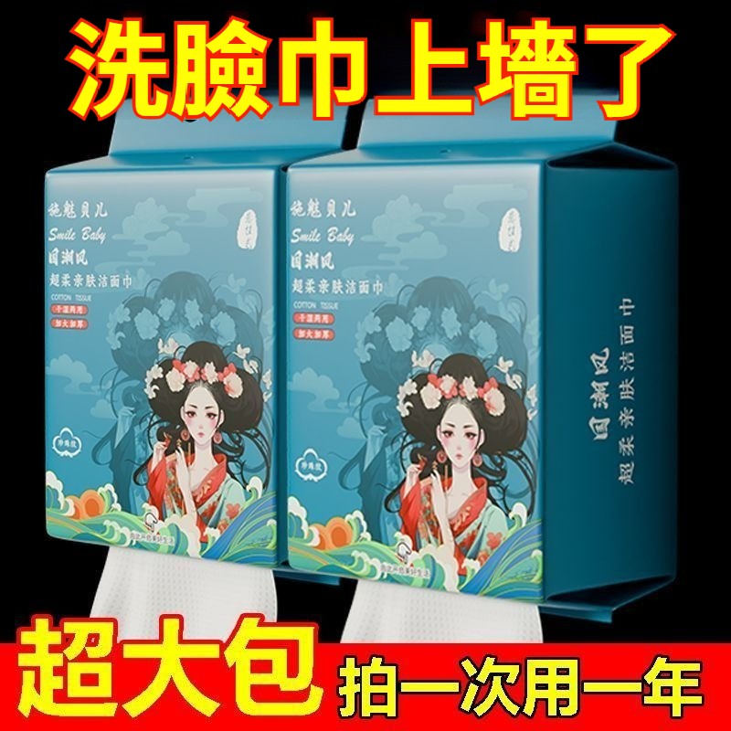 懸掛式洗臉巾一次性棉柔巾美容院加厚家庭裝國潮潔面巾擦臉巾 NT$ 799