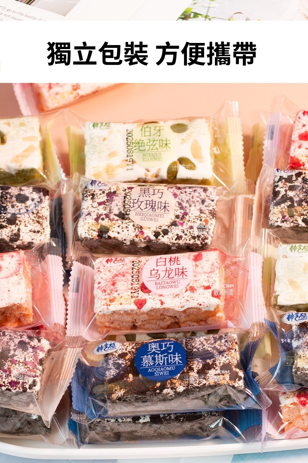 第 2 件 : 伯牙絕弦網紅沙琪瑪白桃烏龍黑巧玫瑰零食品餅乾