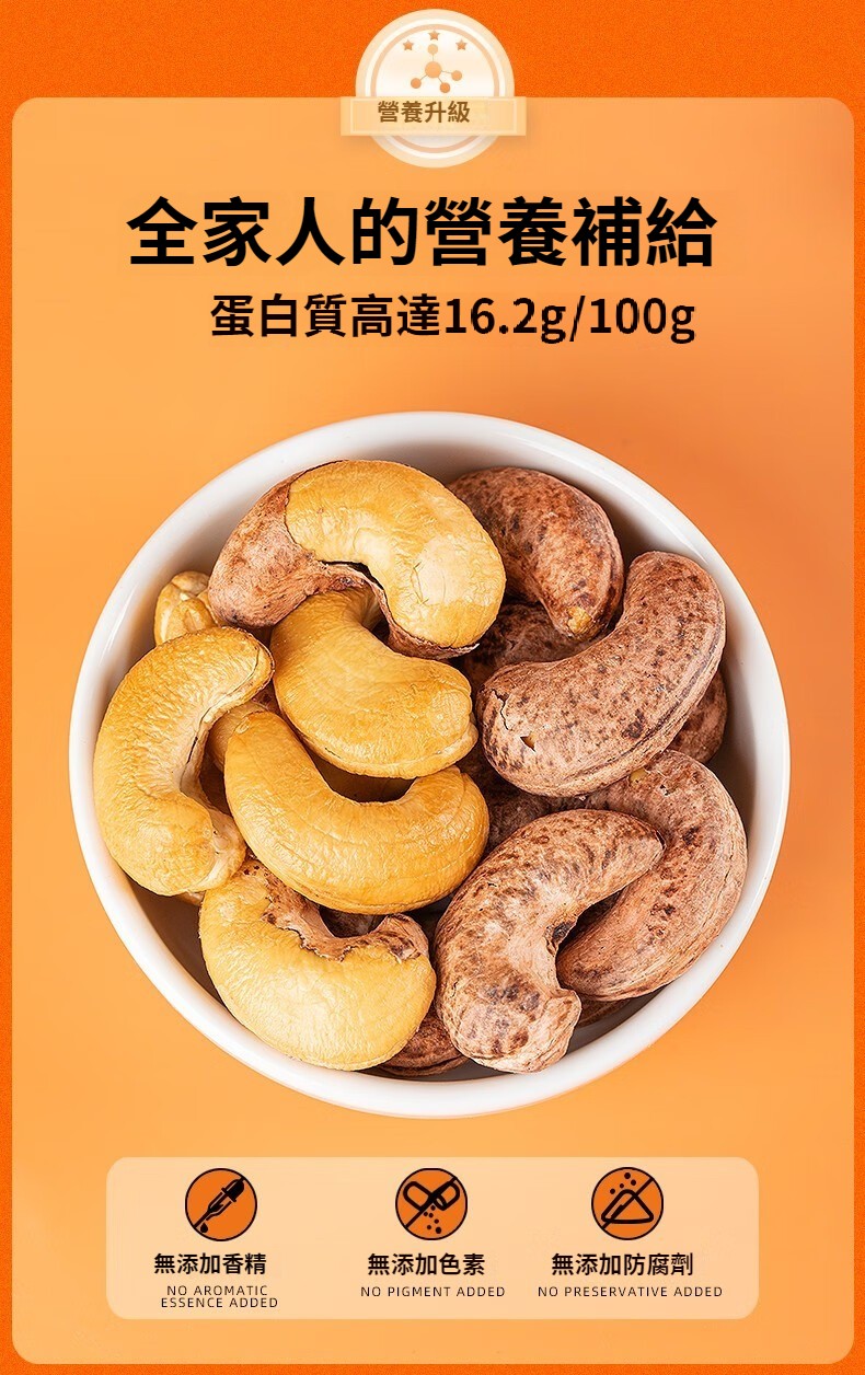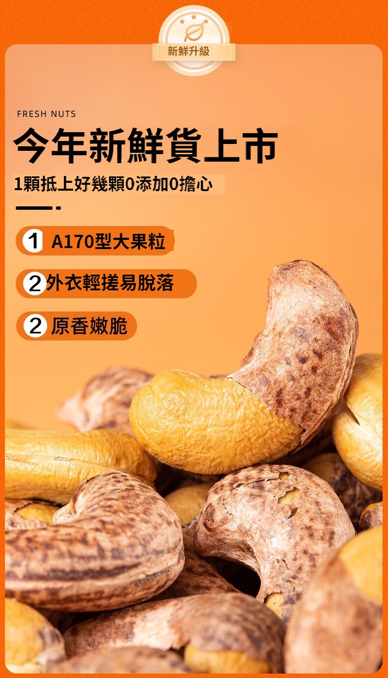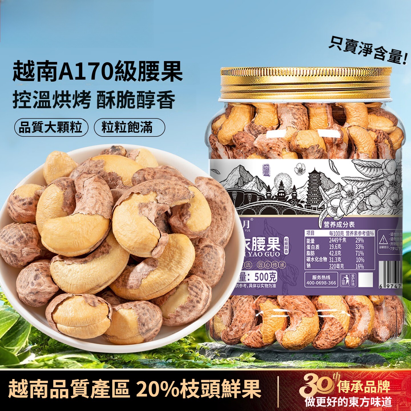 越南紫皮腰果仁原味新貨紫衣腰果獨立小包裝鹽焗罐裝腰果特大顆粒帶皮腰果 NT$ 998