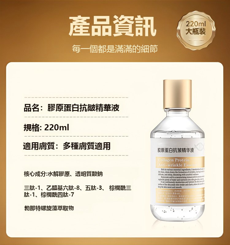 膠原蛋白抗皺提拉精華液、1滴淡化細紋、不粘膩、改善松垮肌膚提升彈性