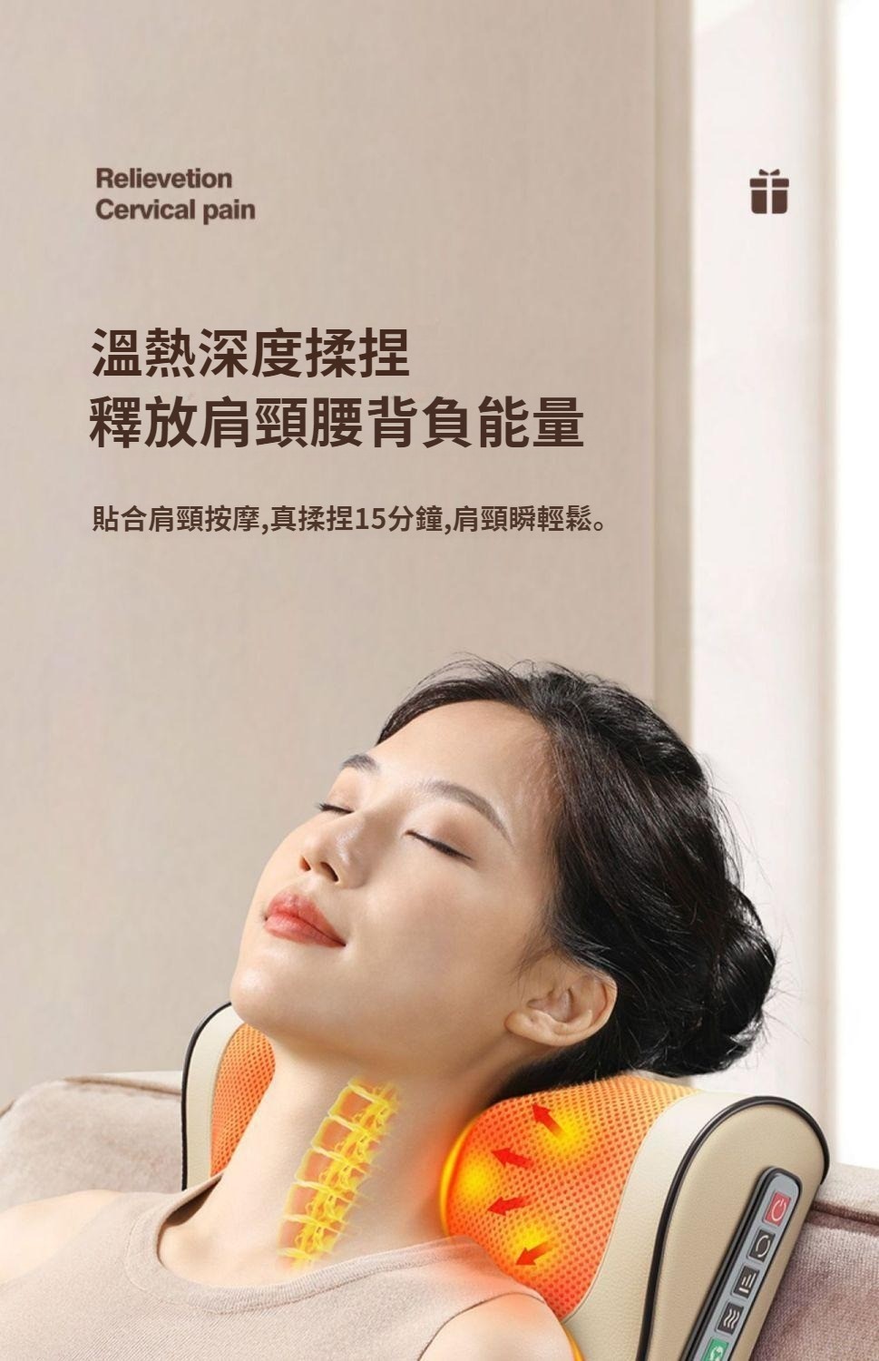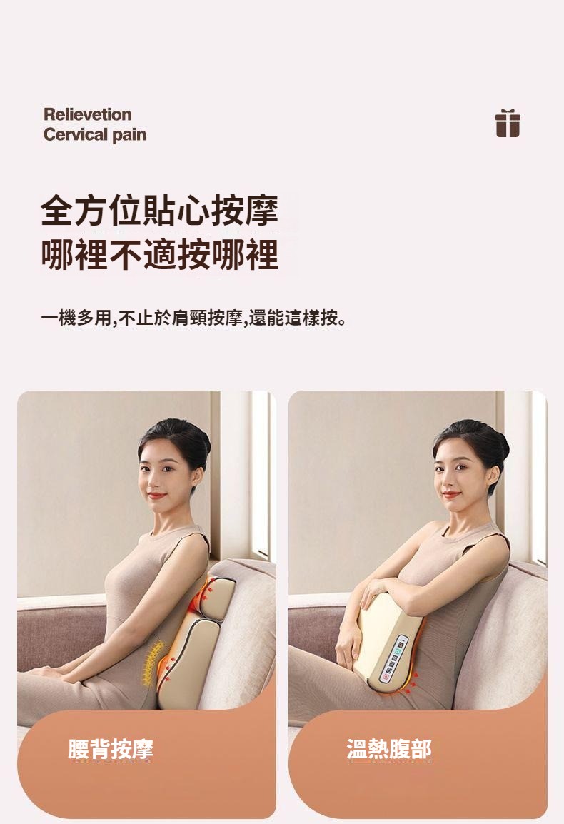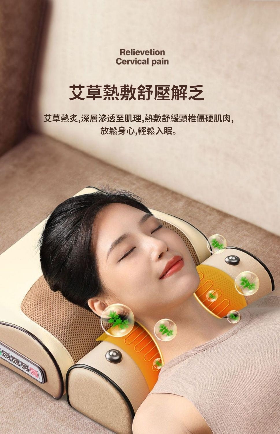 【多功能頸椎按摩枕】揉捏熱敷 深層按摩舒緩,艾草熱敷腰部肩頸按摩儀,家用揉捏肩頸背部按摩器