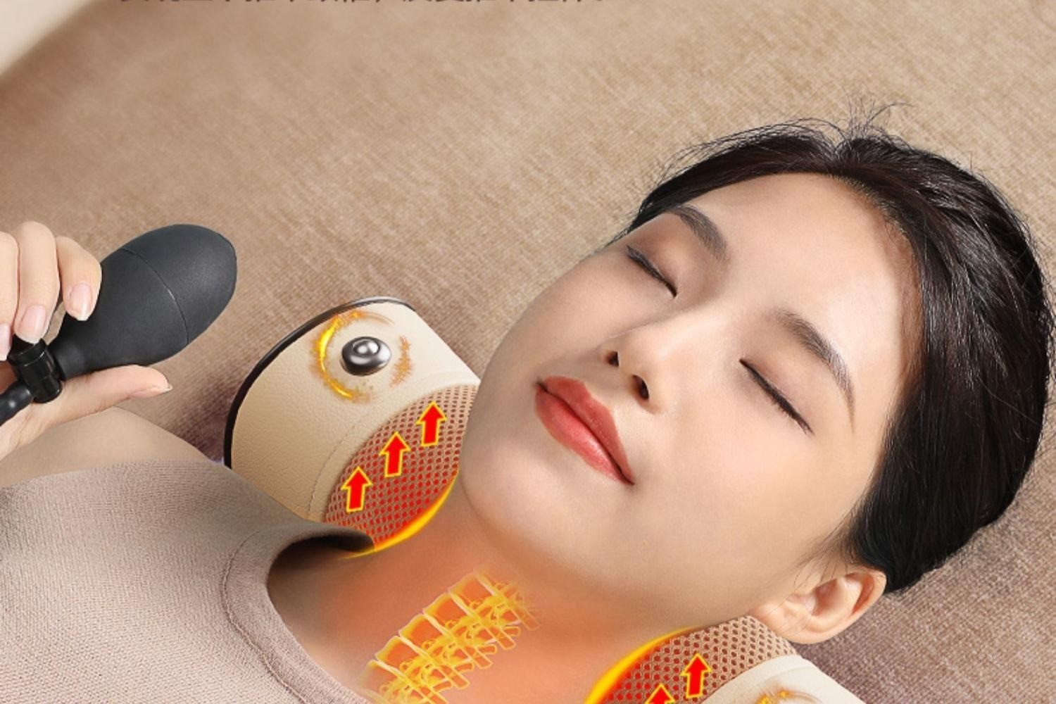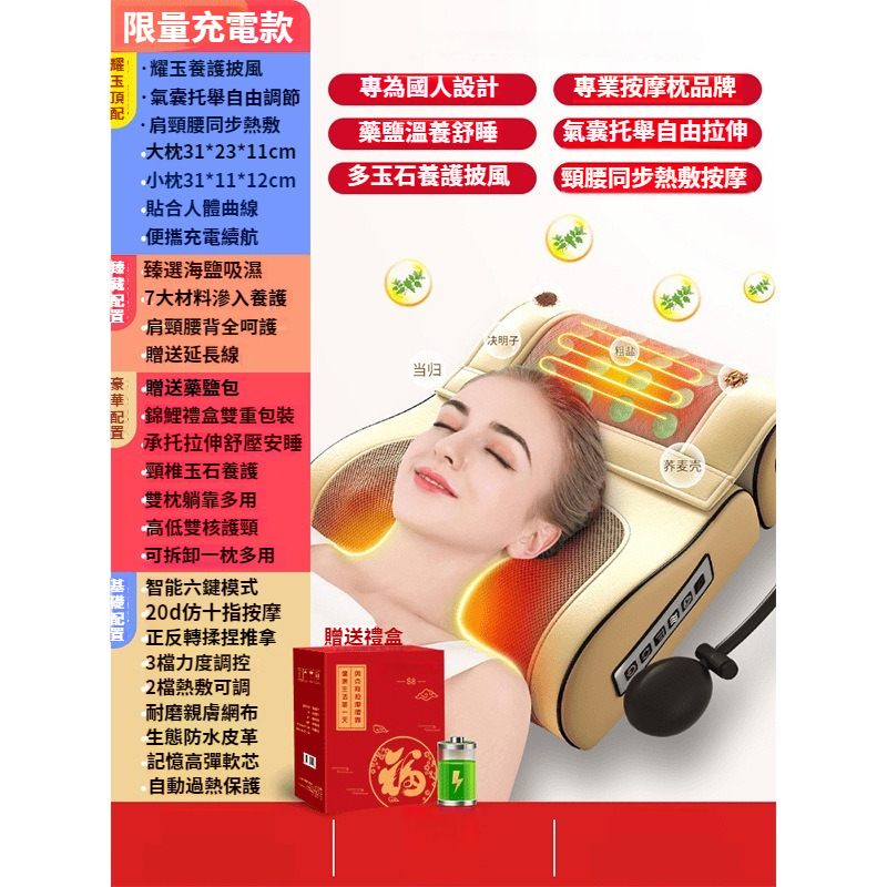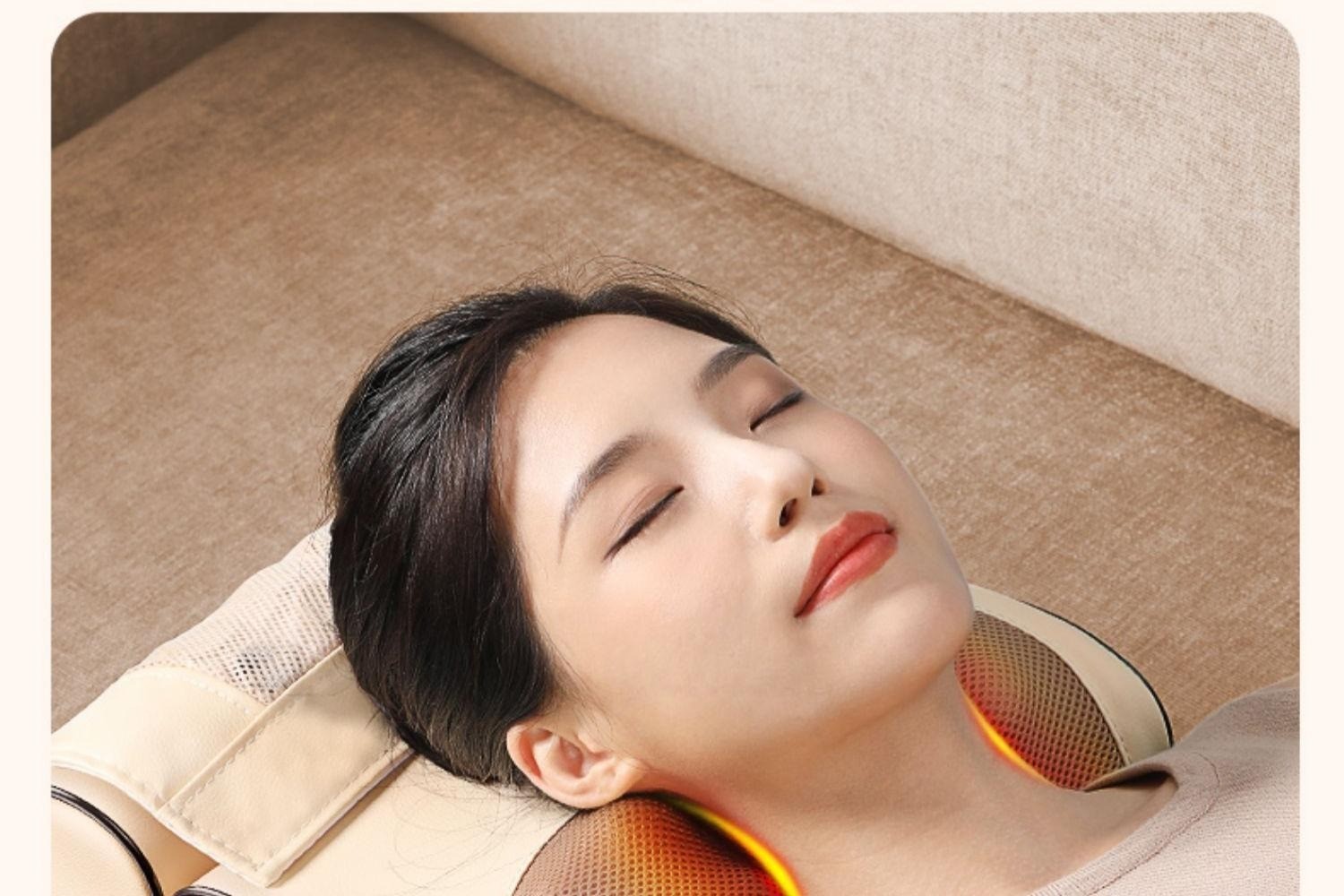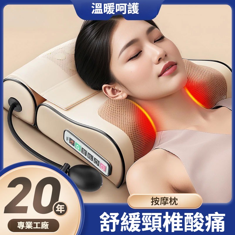 【多功能頸椎按摩枕】揉捏熱敷 深層按摩舒緩,艾草熱敷腰部肩頸按摩儀,家用揉捏肩頸背部按摩器