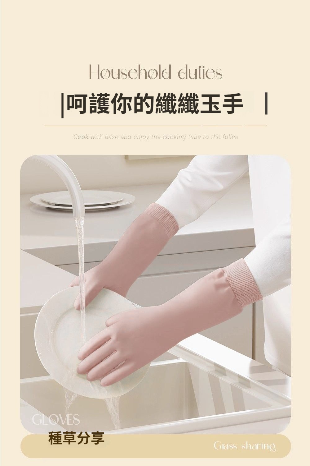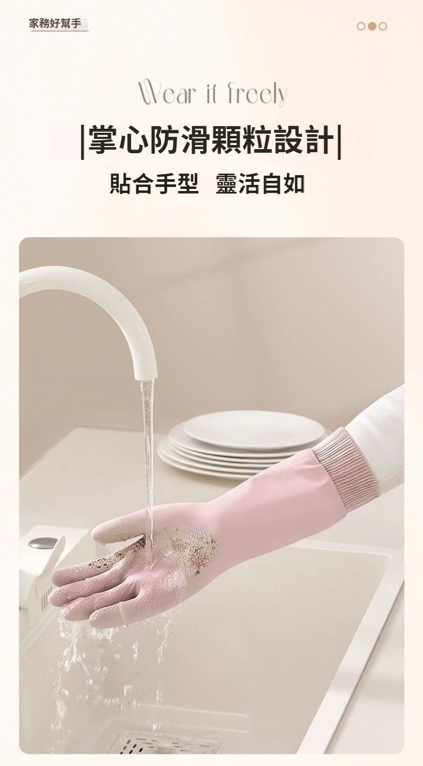第 1 件 : 洗碗手套家務束口高彈刷碗廚房耐用橡膠防水清潔加厚防滑洗衣服