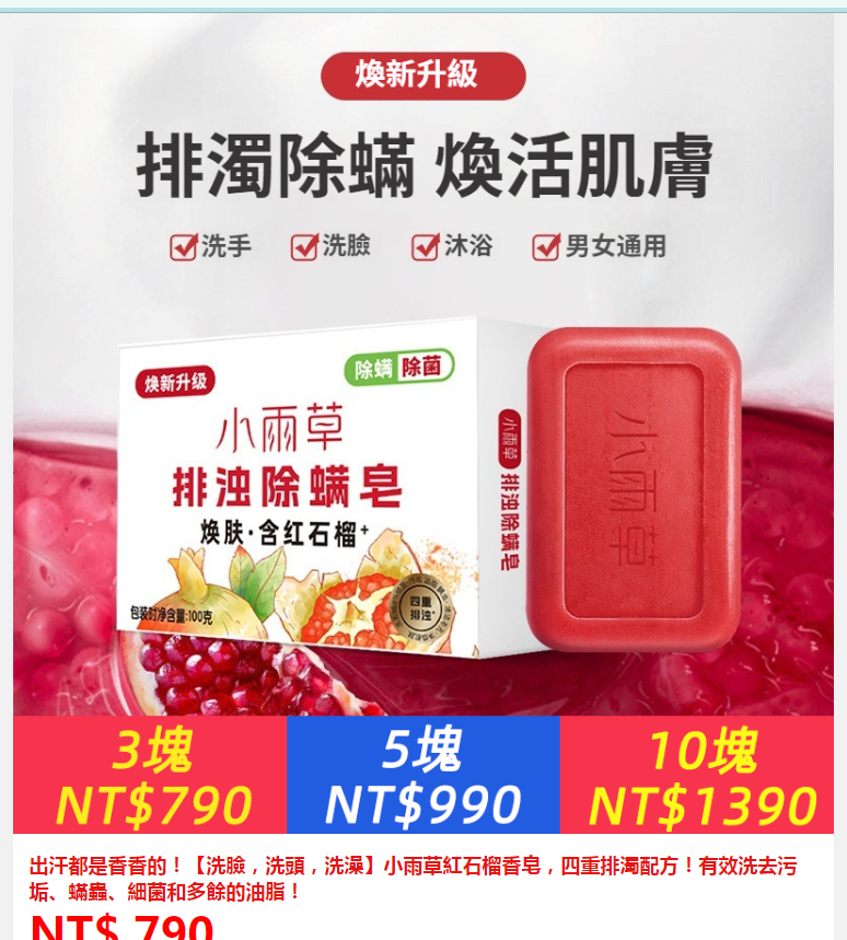 ①小雨草紅石榴香皂15塊+②黑馬1粒+③每粒堅1粒